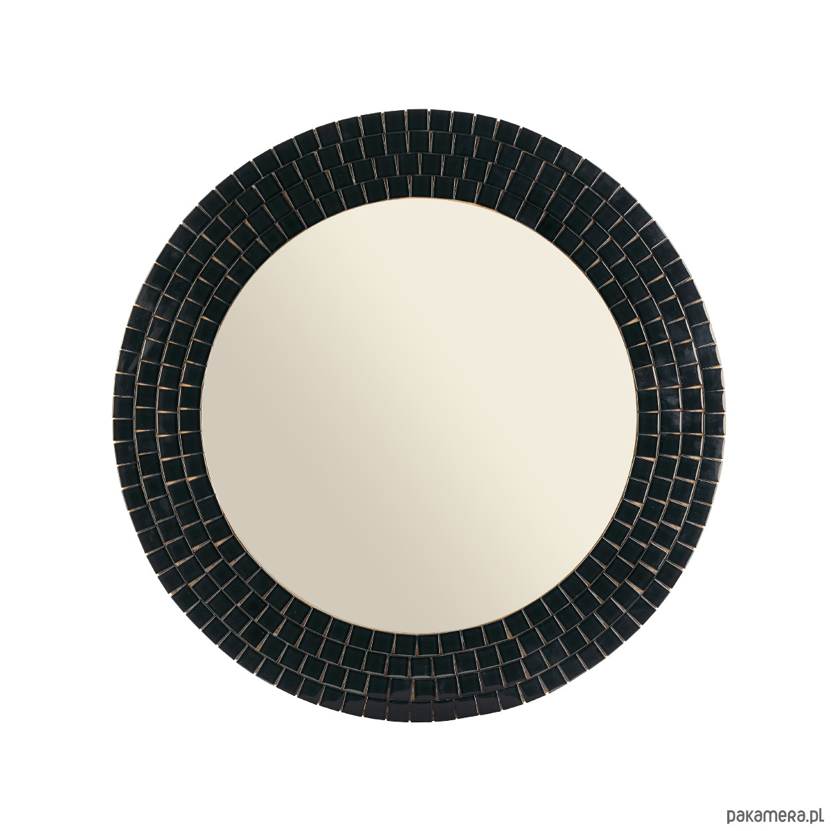 Dekoracyjne okrągłe lustro Freila otoczone szkliwioną mozaiką w kolorze czarnym. Lustro idealnie sprawdzi się niemal w każdym wnętrzu zarówno nowoczesnym, minimalistycznym jak i w klasycznym. Nada wyraźnego kontrastu jasnym wnętrzom. Czarna rama lustra idealnie sprawdzi się w połączeniu zarówno z białymi ścianami jak również z ciemnymi tworząc spójną bogatą całość. Wykorzystaj zalety lustra we wszystkich pomieszczeniach. Lustro Freila wkomponujesz w wystrój swojej łazienki, salonu czy garderoby. Nada stylowego charakteru również w gabinecie kosmetycznym czy w SPA.