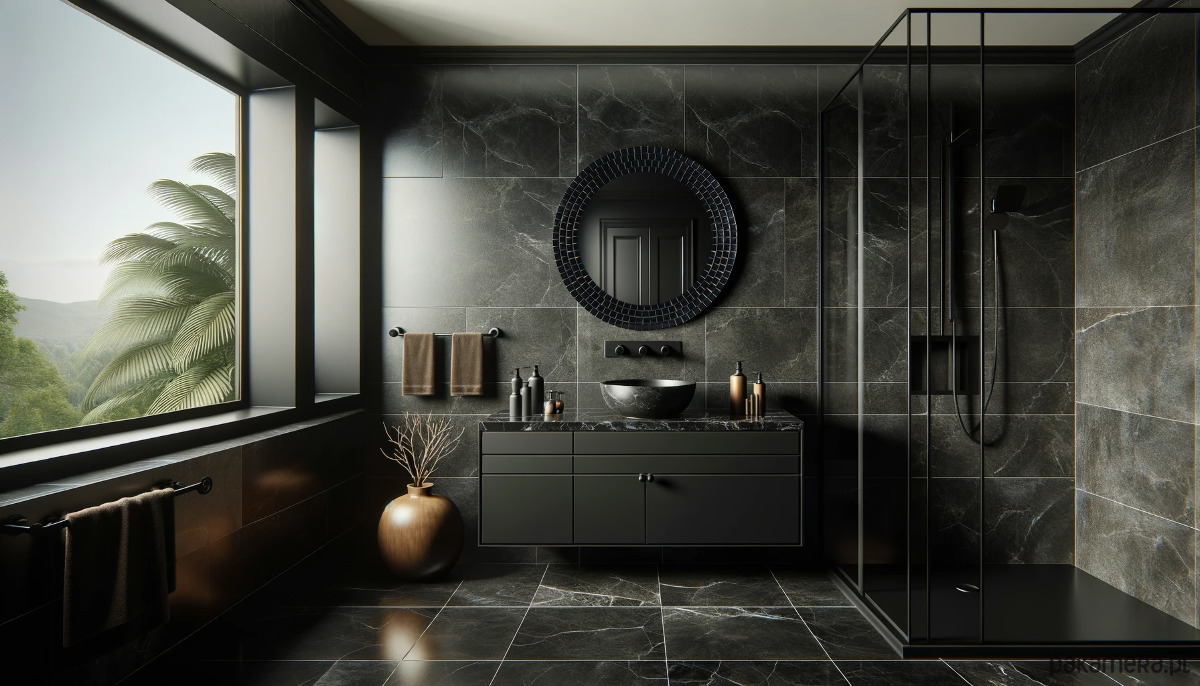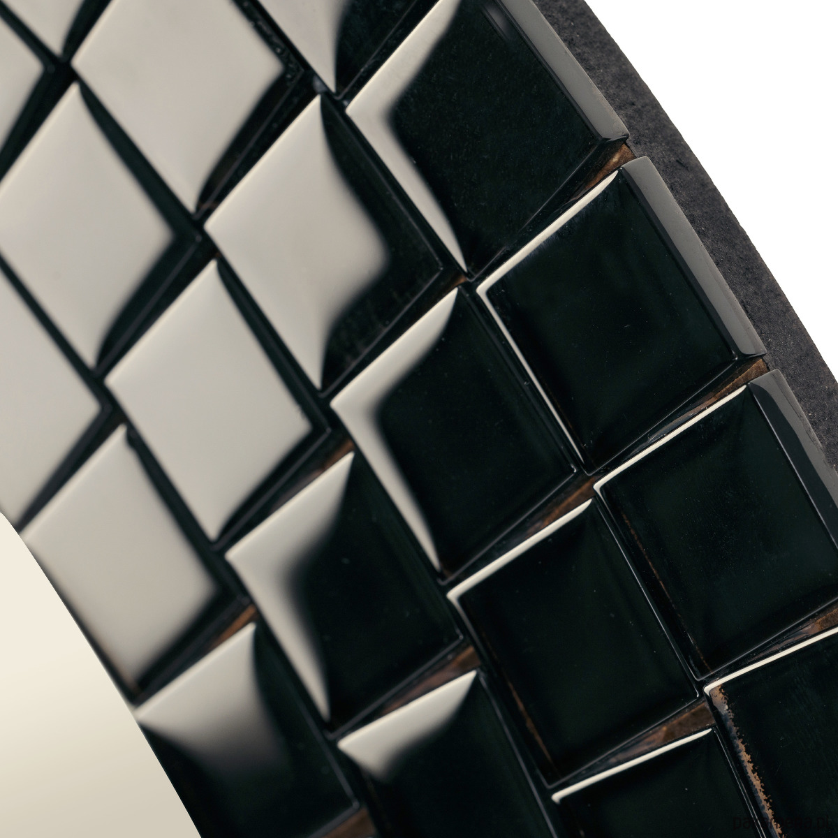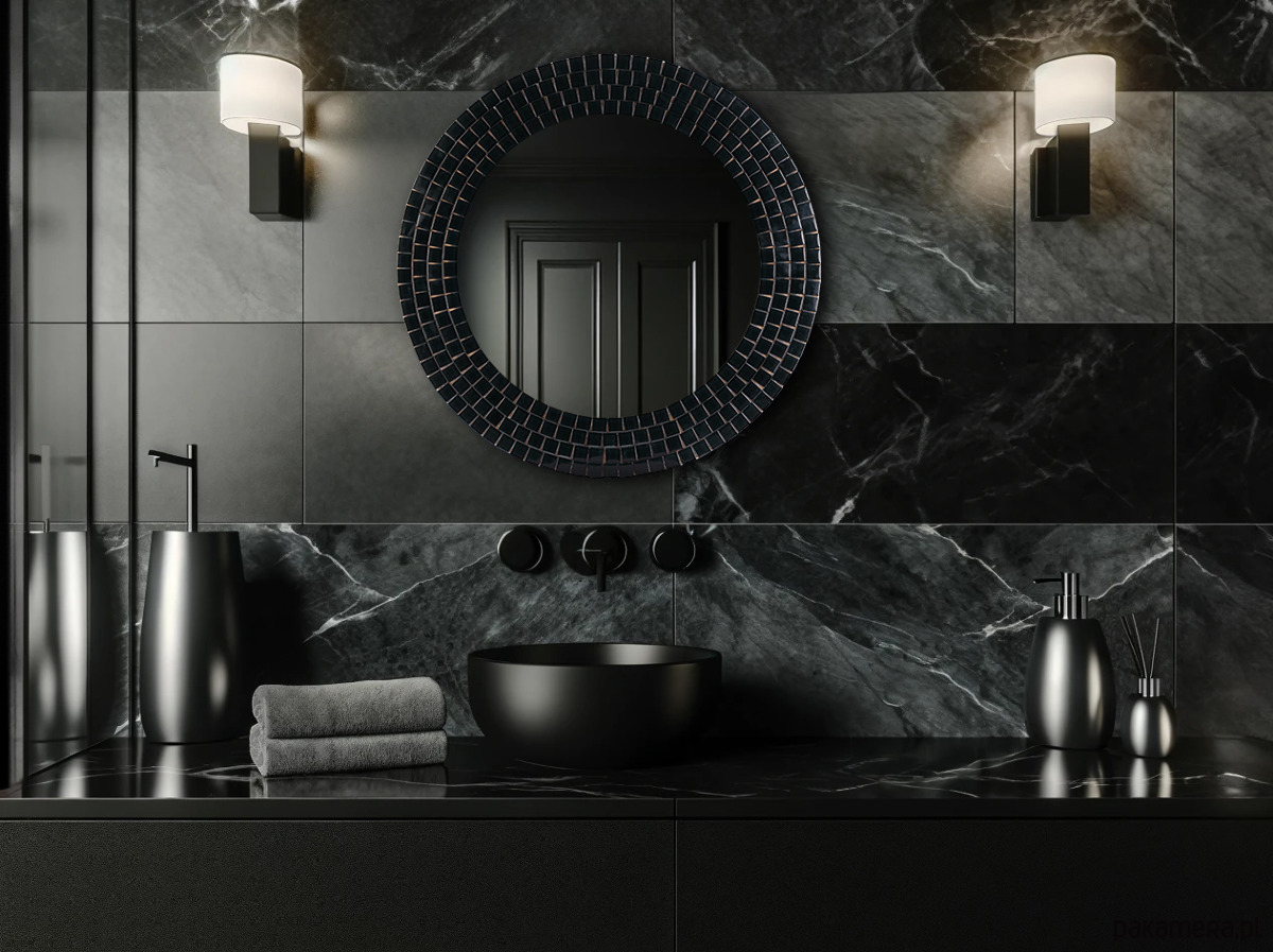 Lustro okrągłe czarne, błyszczące lustro, mozaika, czarna rama, do łazienki