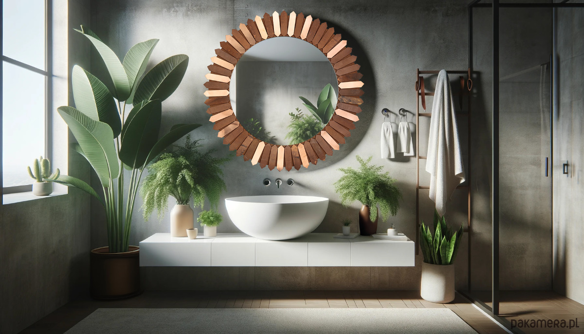 Lustro okrągłe miedziane, rdzawe, stal nierdzewna, lustro do salonu, SPA