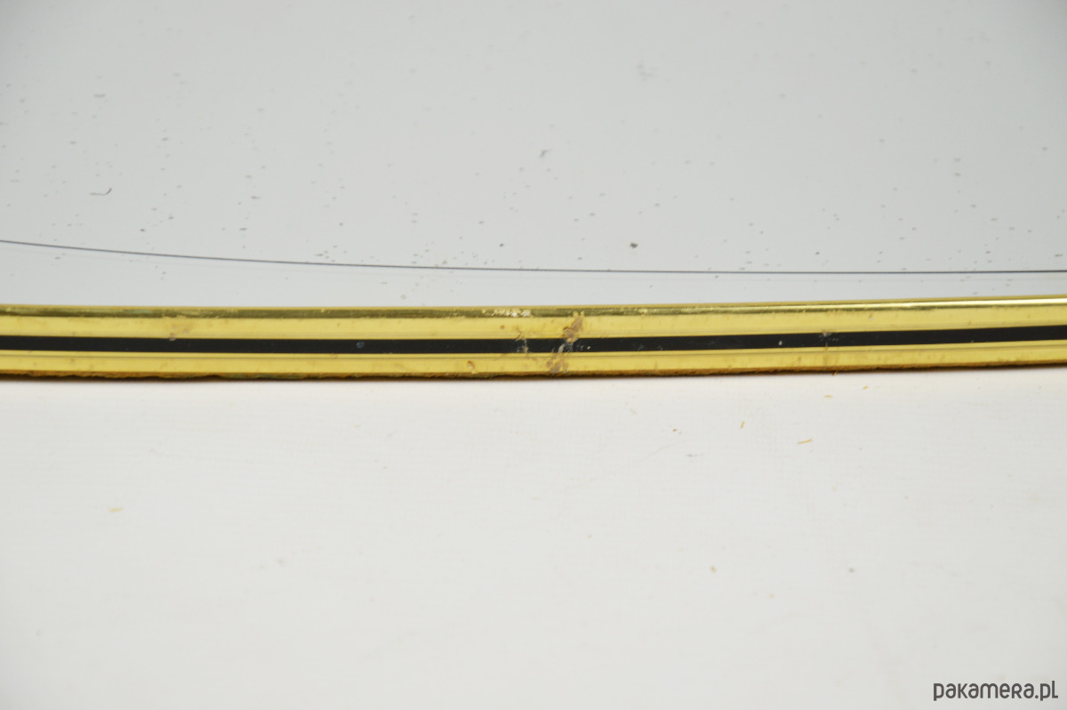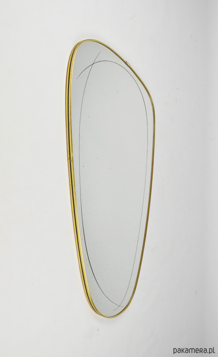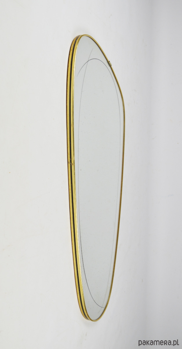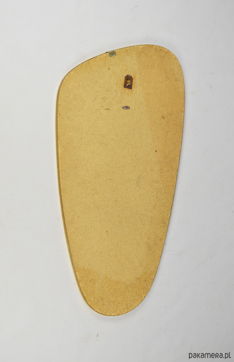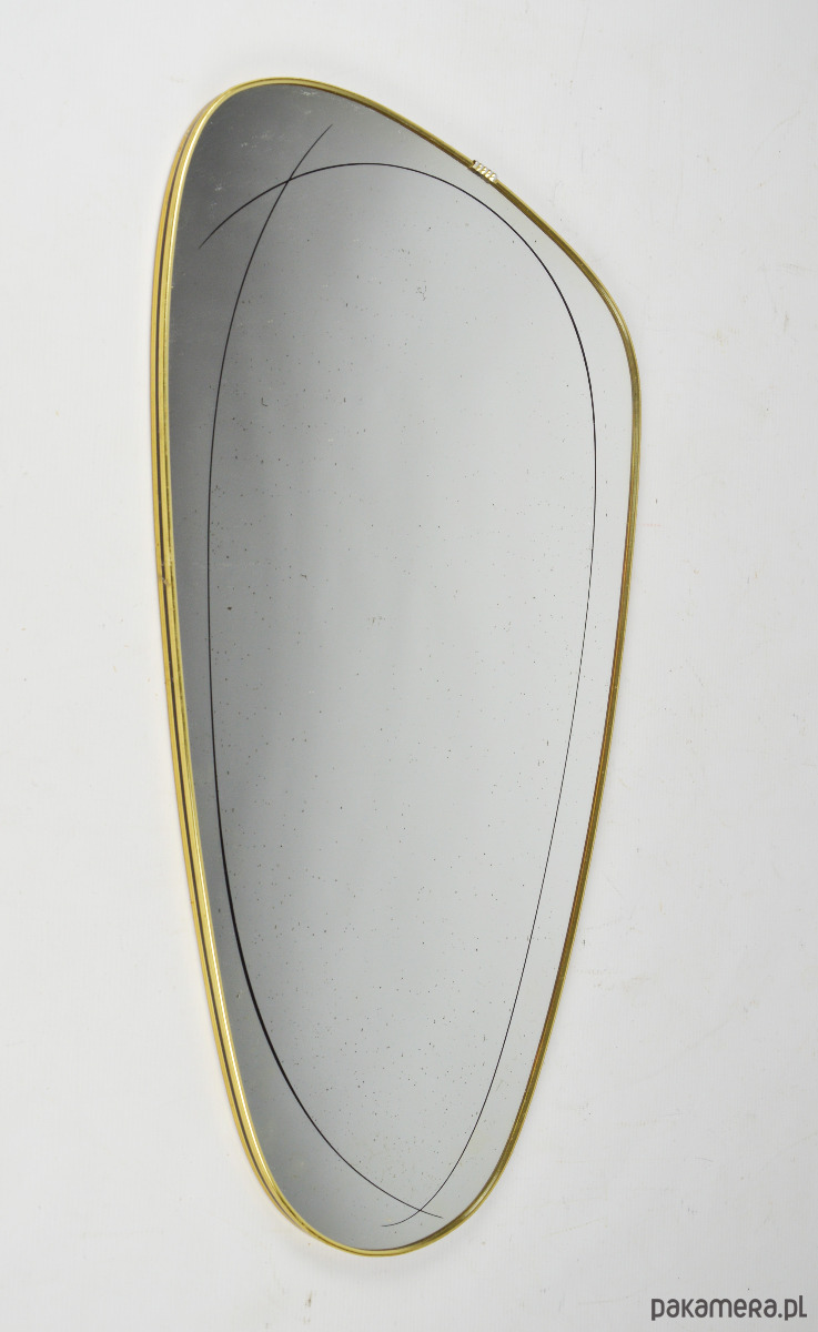 Lustro w stylu Rockabilly z czarną dekoracją na tafli lustra. Stan zachowania dobry, widoczne utlenienia tafli lustra oraz rysy i otracia ramy.