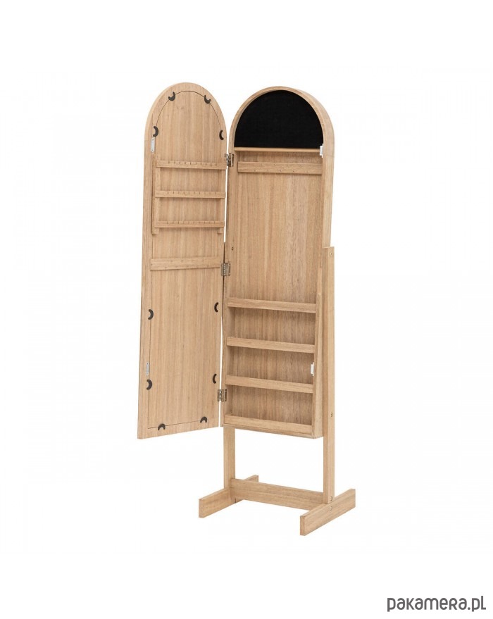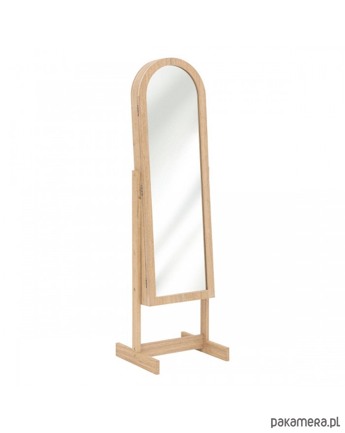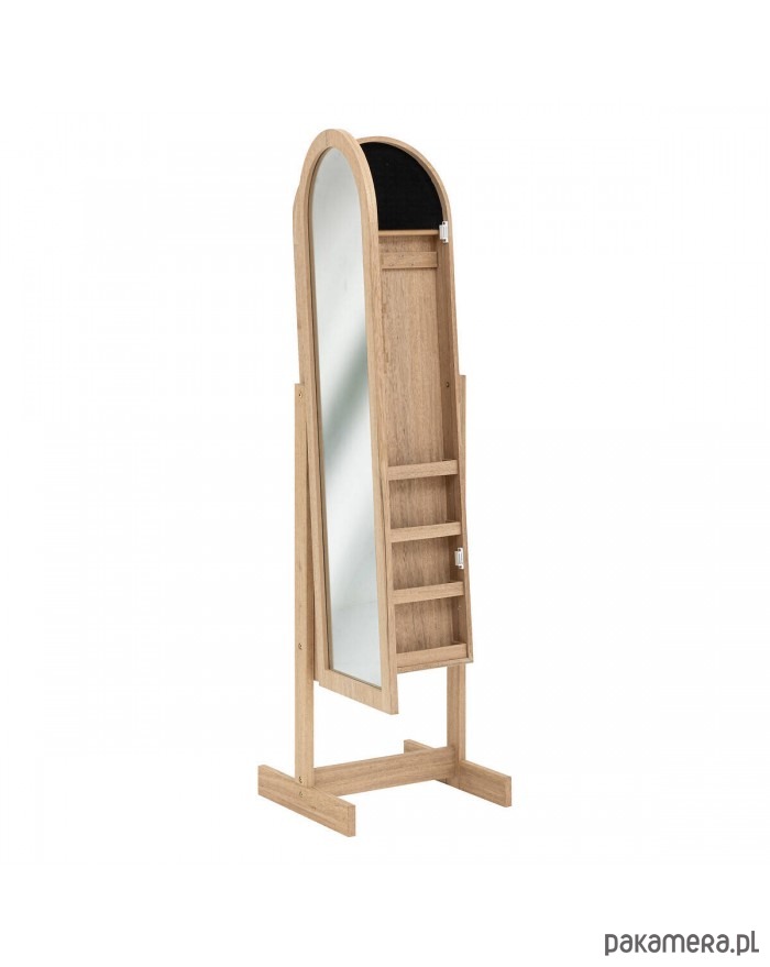 Wysokie lustro z ukrytą szafką pod szklaną taflą. Wykonane z trwałego MDF w kolorze dębu sonoma. Idealny mebel do sypialni. Można w nim schować biżuterię lub bibeloty, które nie będą się kurzyły na półkach.