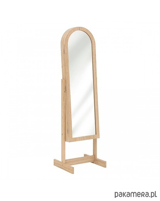 Wysokie lustro z ukrytą szafką pod szklaną taflą. Wykonane z trwałego MDF w kolorze dębu sonoma. Idealny mebel do sypialni. Można w nim schować biżuterię lub bibeloty, które nie będą się kurzyły na półkach.