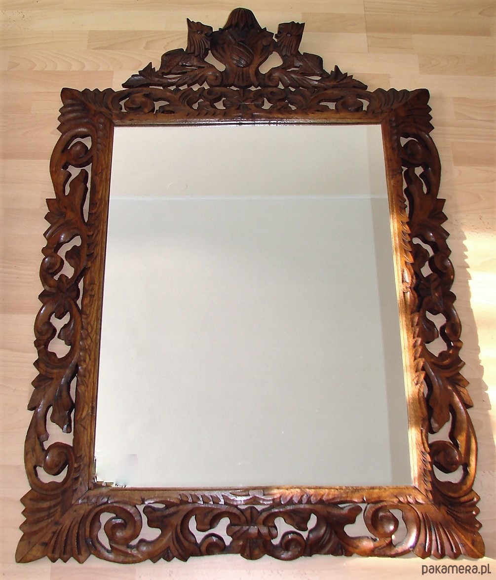 Lustro w rzeźbionej drewnianej ramie lata 40. vintage