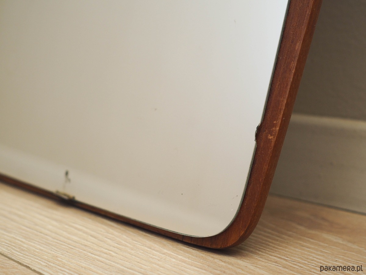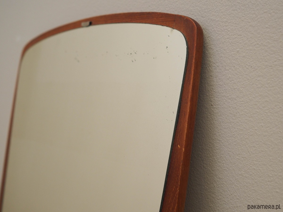 Lustro w tekowej ramie, duński design, lata 70, produkcja: Dania