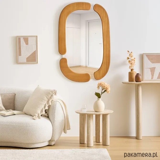 Drewniane lustro Antoine wniesie ciepło do Twojego domu. To owalne lustro ma drewnianą ramę o unikalnych krzywiznach. Dzięki dużym wymiarom idealnie sprawdzi się jako centralny element Twojego pokoju.