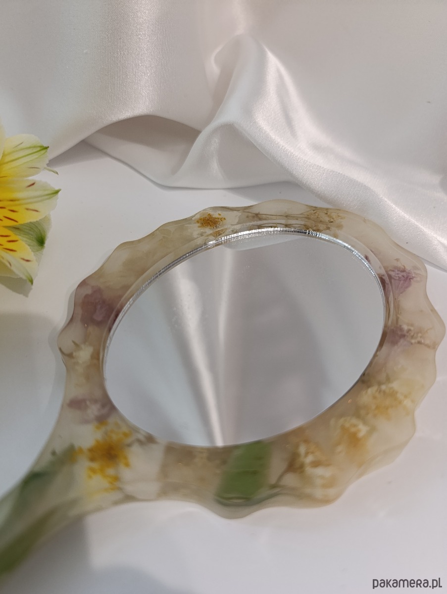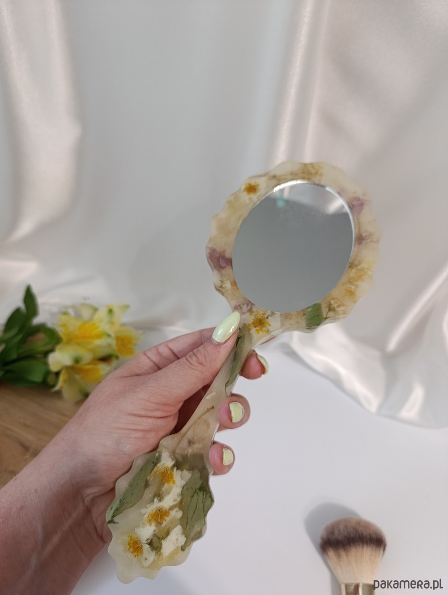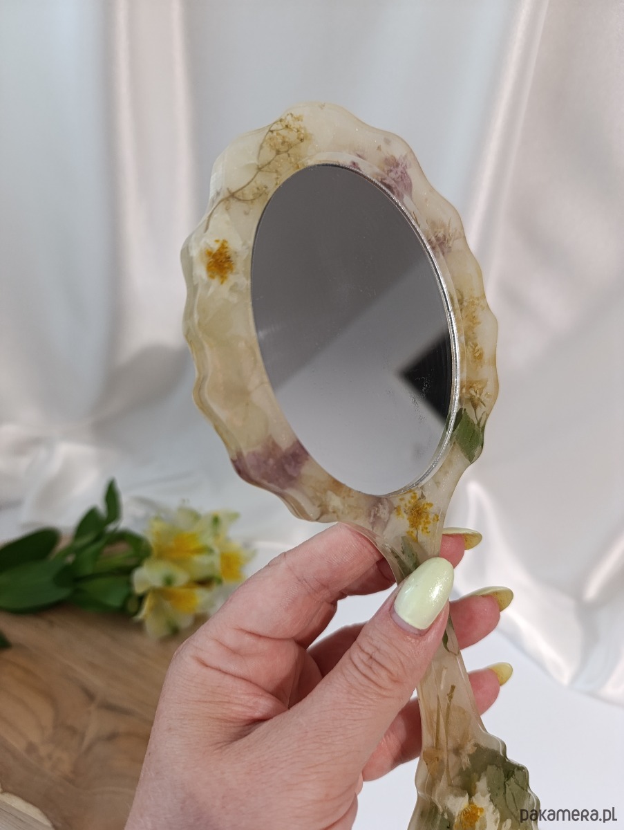 To wyjątkowe lusterko z zatopionymi kwiatami przenosi Cię prosto do ogrodu pełnego romantyzmu i subtelności.