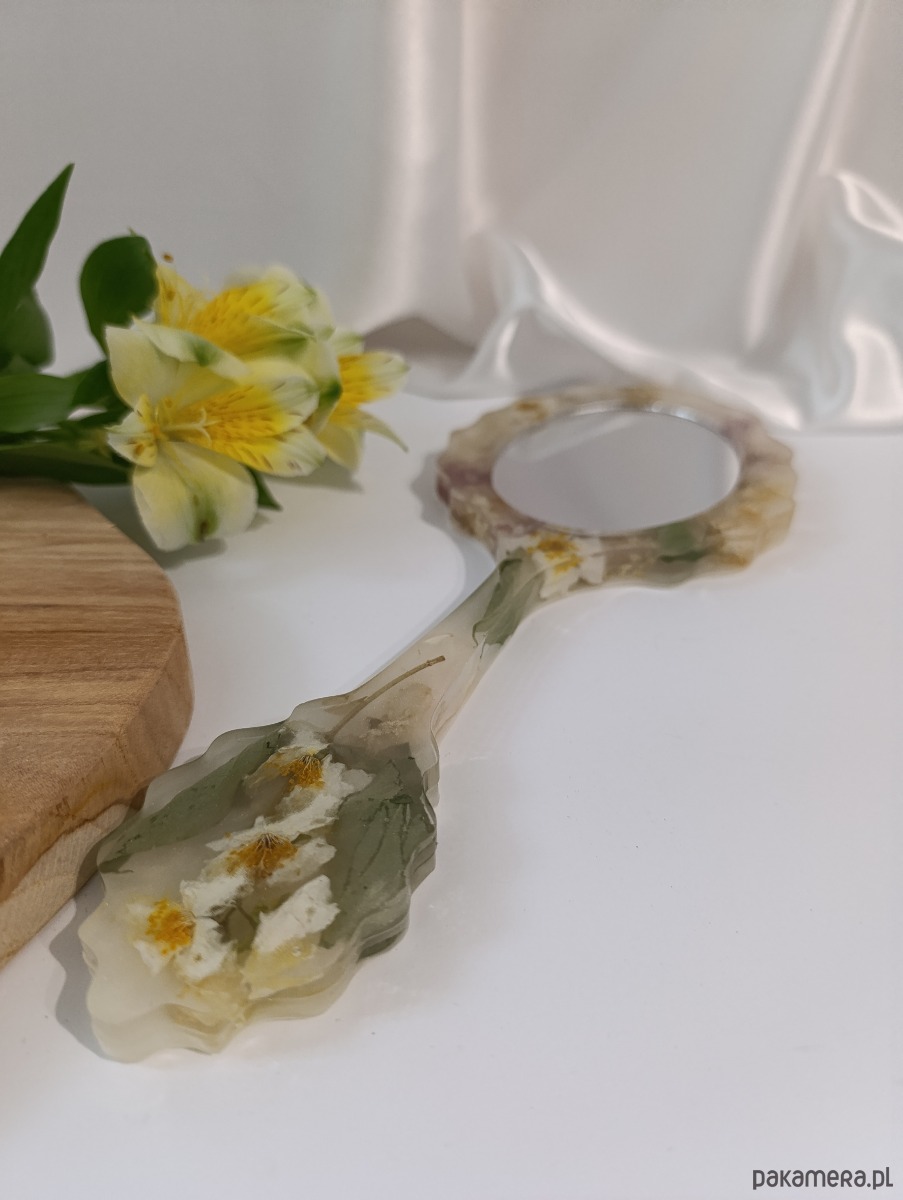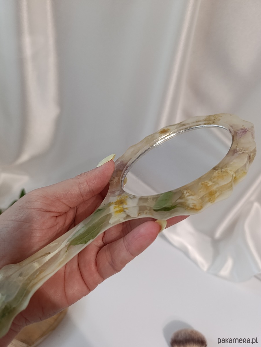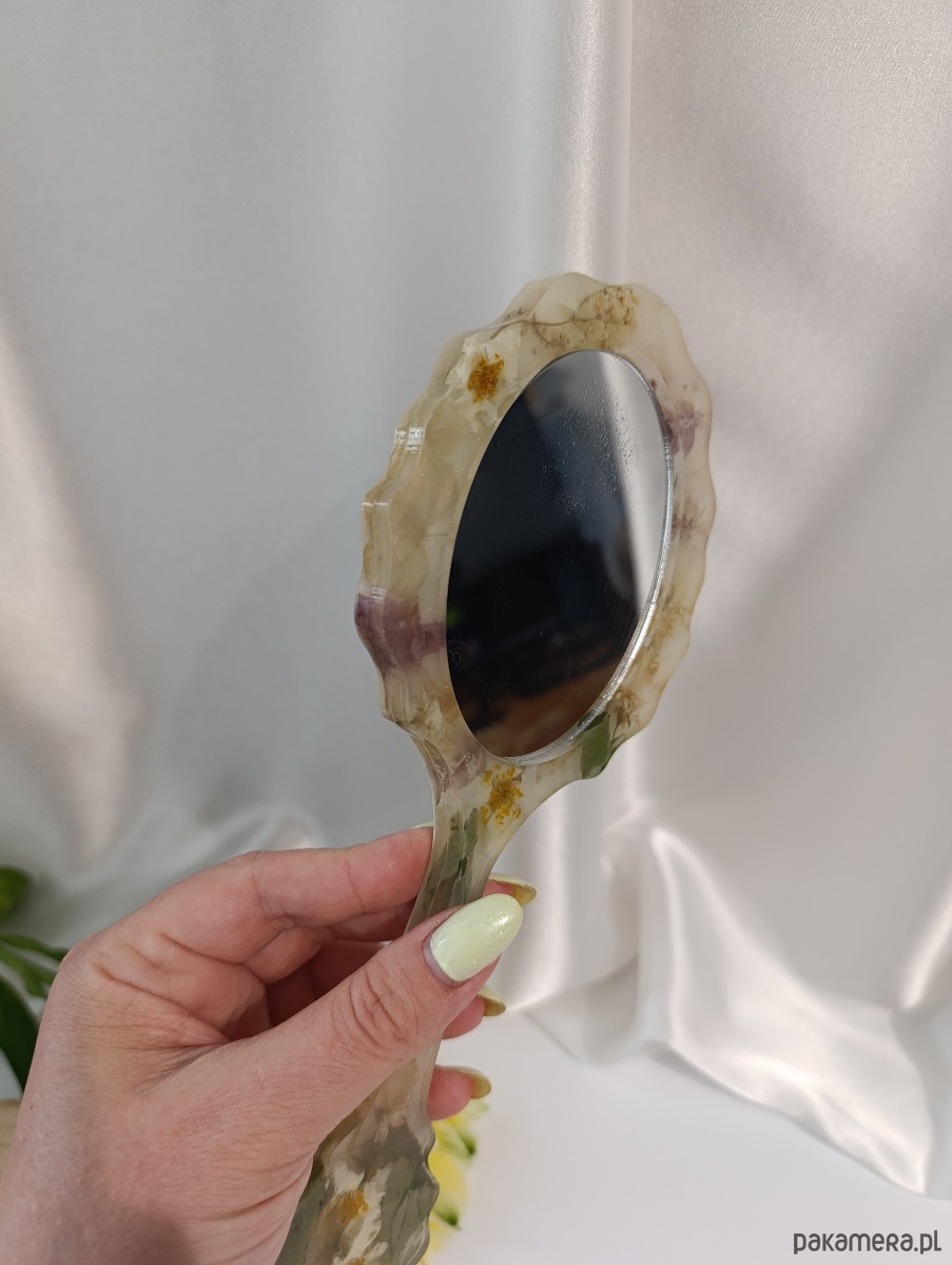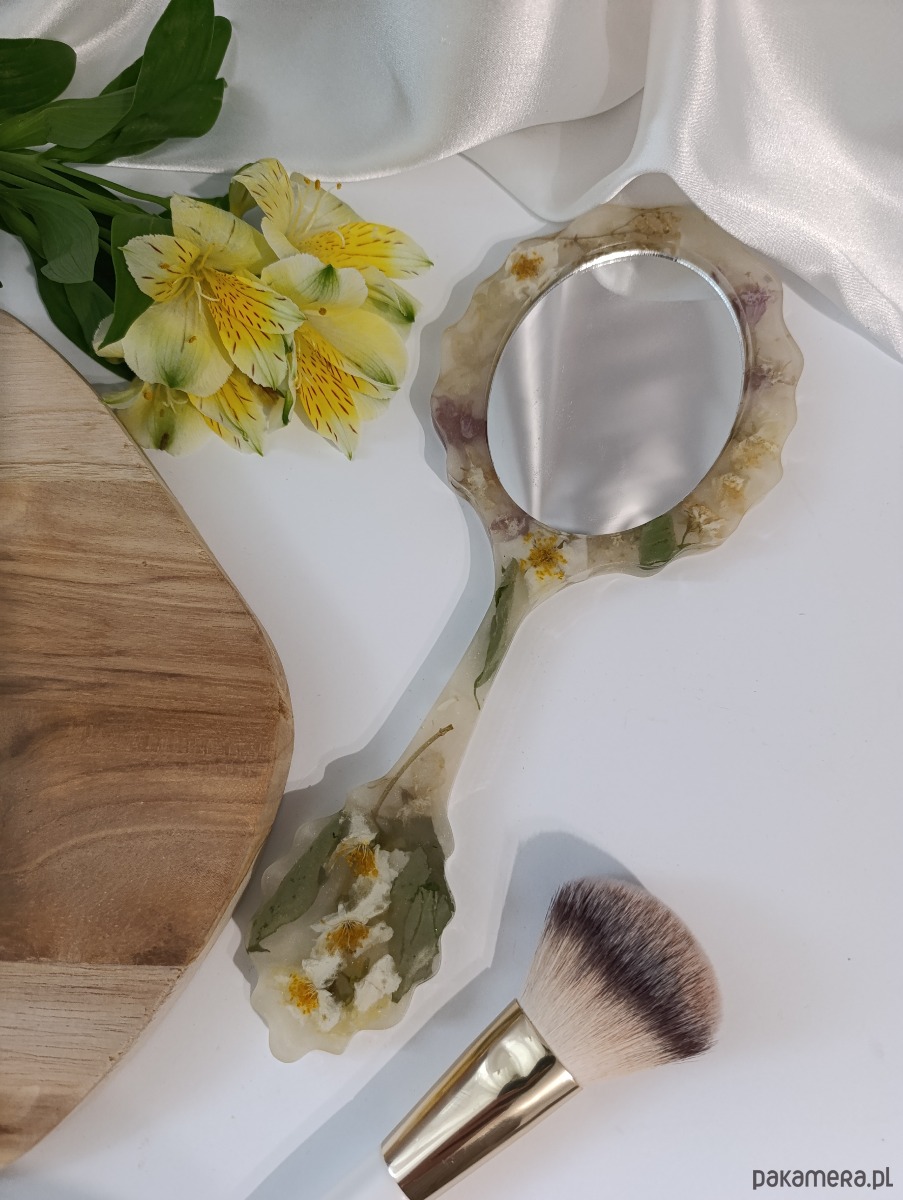 To wyjątkowe lusterko z zatopionymi kwiatami przenosi Cię prosto do ogrodu pełnego romantyzmu i subtelności.