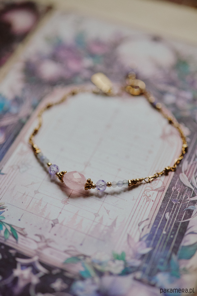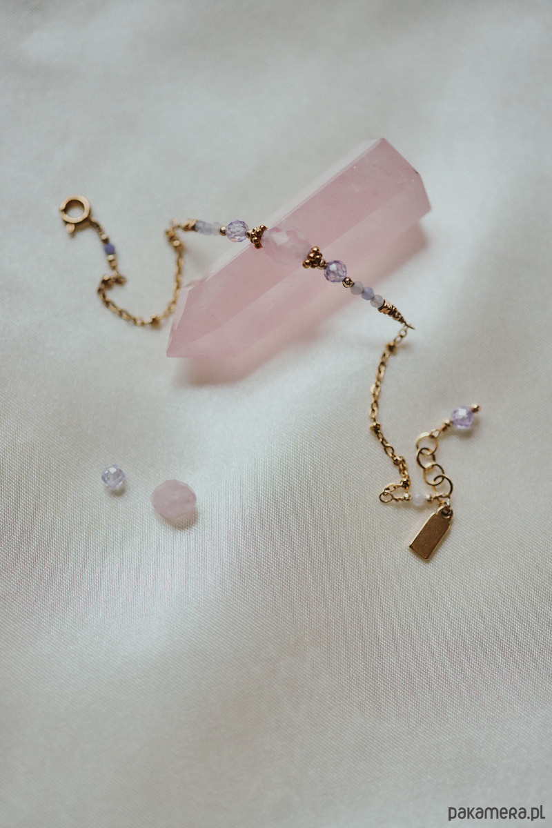 Jak wyglądałby luty gdyby był bransoletką? Dla mnie ten miesiąc to rumiane z zimna policzki i pastelowe wschody słońca na tle śniegu. Blade róże, trochę romantyzmu i słodkości. To wszystko zamknęłam w nowej, limitowanej bransoletce Lutówce. Jest tu bryłka fasetowanego kwarcu różowego, lawendowy jadeit oraz cyrkonie. Luty z nią na nadgarstku jest o wiele przyjemniejszy i bardziej uroczy. Aż chce się romantyzować życie!