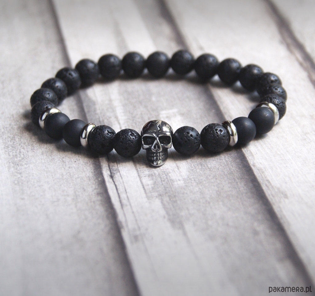 TUTAJ: niezwykle ciekawa bransoletka (zdj.1) wykonana z kul 2 rodzajów czarnej lawy wulkanicznej 8mm (gładkiej, matowej oraz porowatej) ; masywnej przestrzennej czachy ZE STALI SZLACHETNEJ i solidnych pierścieni ze stali szlachetnej (nie uczula, kolor się nie ściera) ...