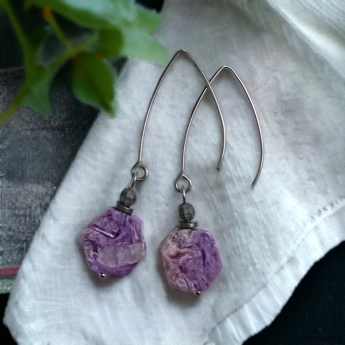 pięknie wybarwione, nieregularne bryłki czaroitu,