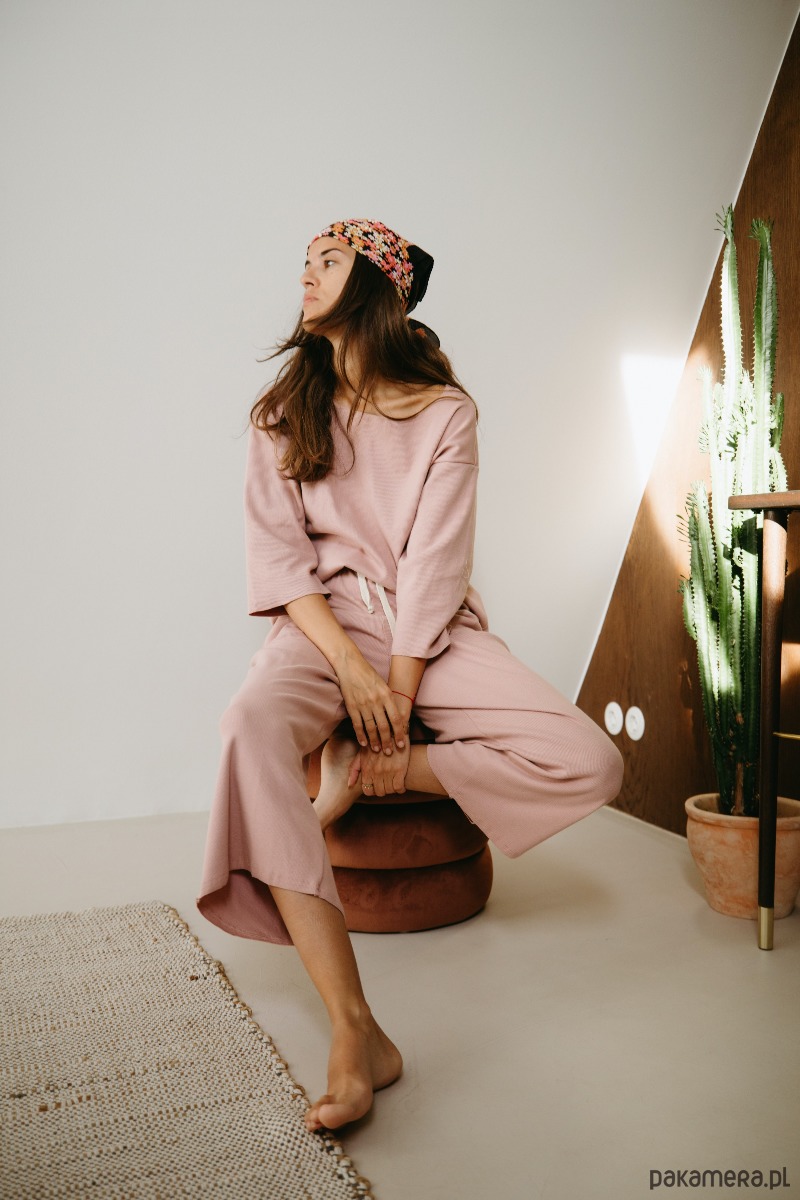Z jednej strony ultrawygodna, prążkowana dzianina....z drugiej, nie do końca dresowy krój. To przecież kompozycja doskonała na zwykłą/niezwykłą codzienność. Ma być wygodnie i pięknie, bo zasługujemy na to co najlepsze. Efekt końcowy zależy od dodatków, a tutaj możemy poszaleć! Minimalistyczny design zestawu pozwala naprawdę na wiele! Trampki, chusta, oversizowy płaszcz.....na co tylko masz ochotę.