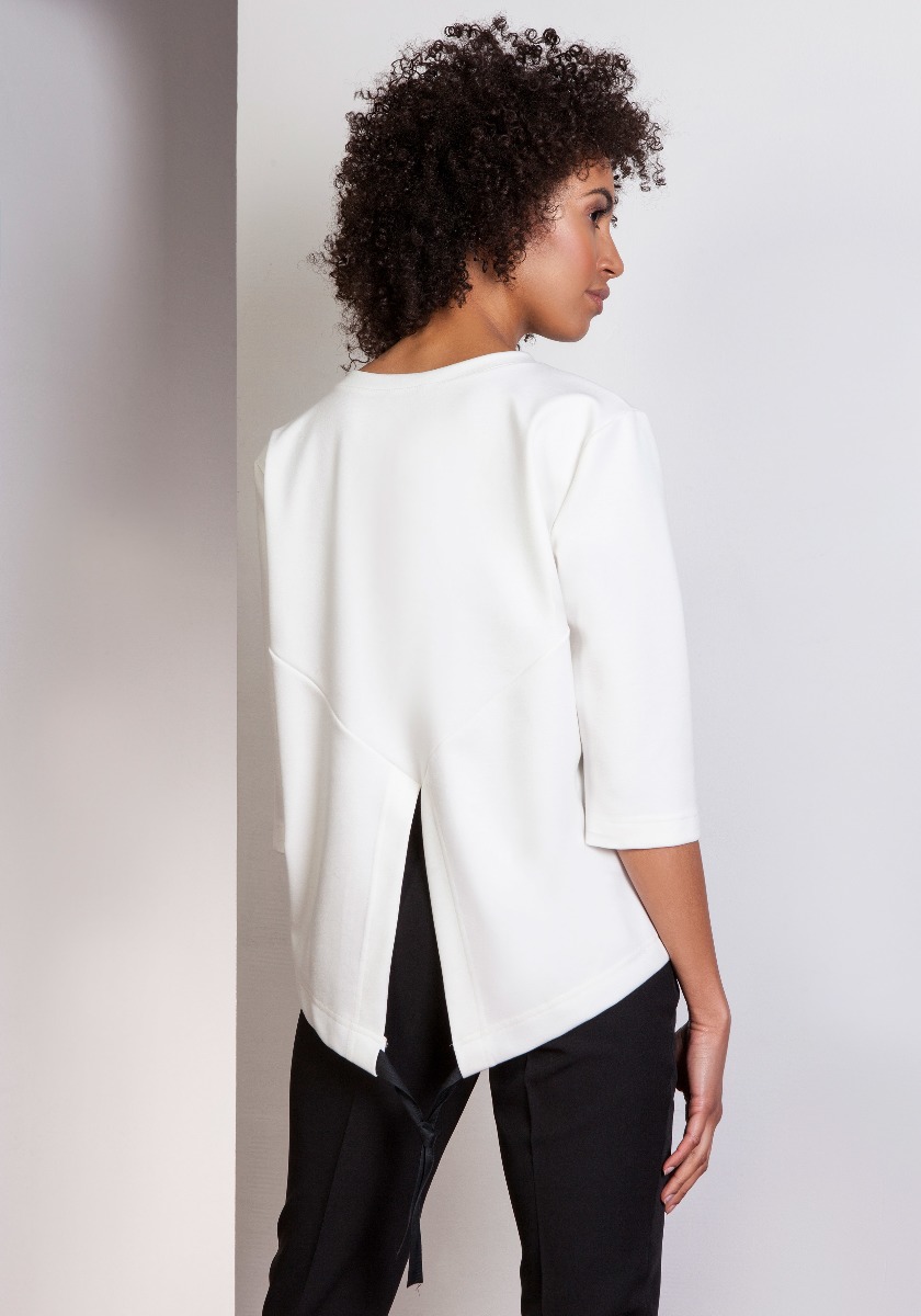 Luźna bluzka – frak dedykowana kobietom oryginalnym, wyjątkowym, a jednocześnie ceniącym wygodę i minimalizm. Pozwoli stworzyć biznesowy, elegancki look.