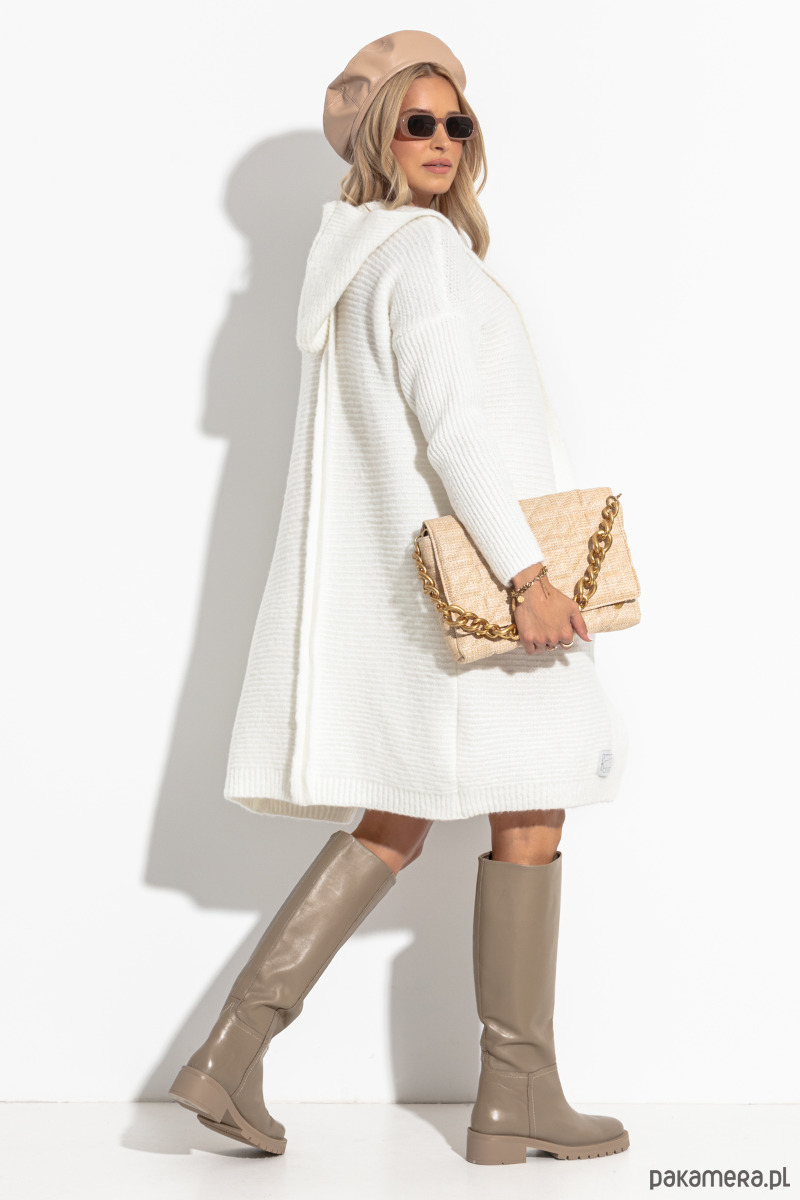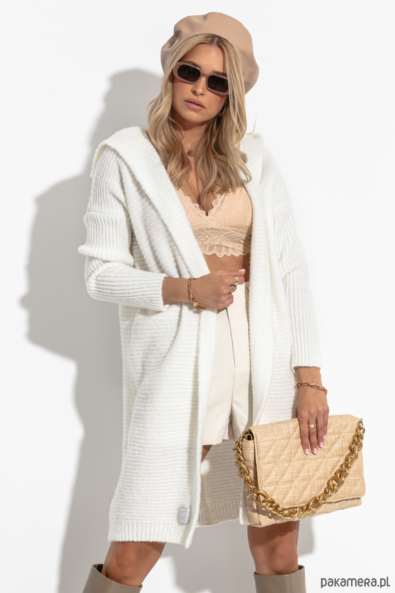 Miły i bardzo wygodny kardigan z kapturem. Swobodny, luźny fason, który będzie pasował do wielu stylizacji. Dekolt wykończony kapturem, zaś rękawy posiadają ściągaczowe mankiety, dzięki nim możesz podciągnąć je wyżej i nadać sportowy charakter.