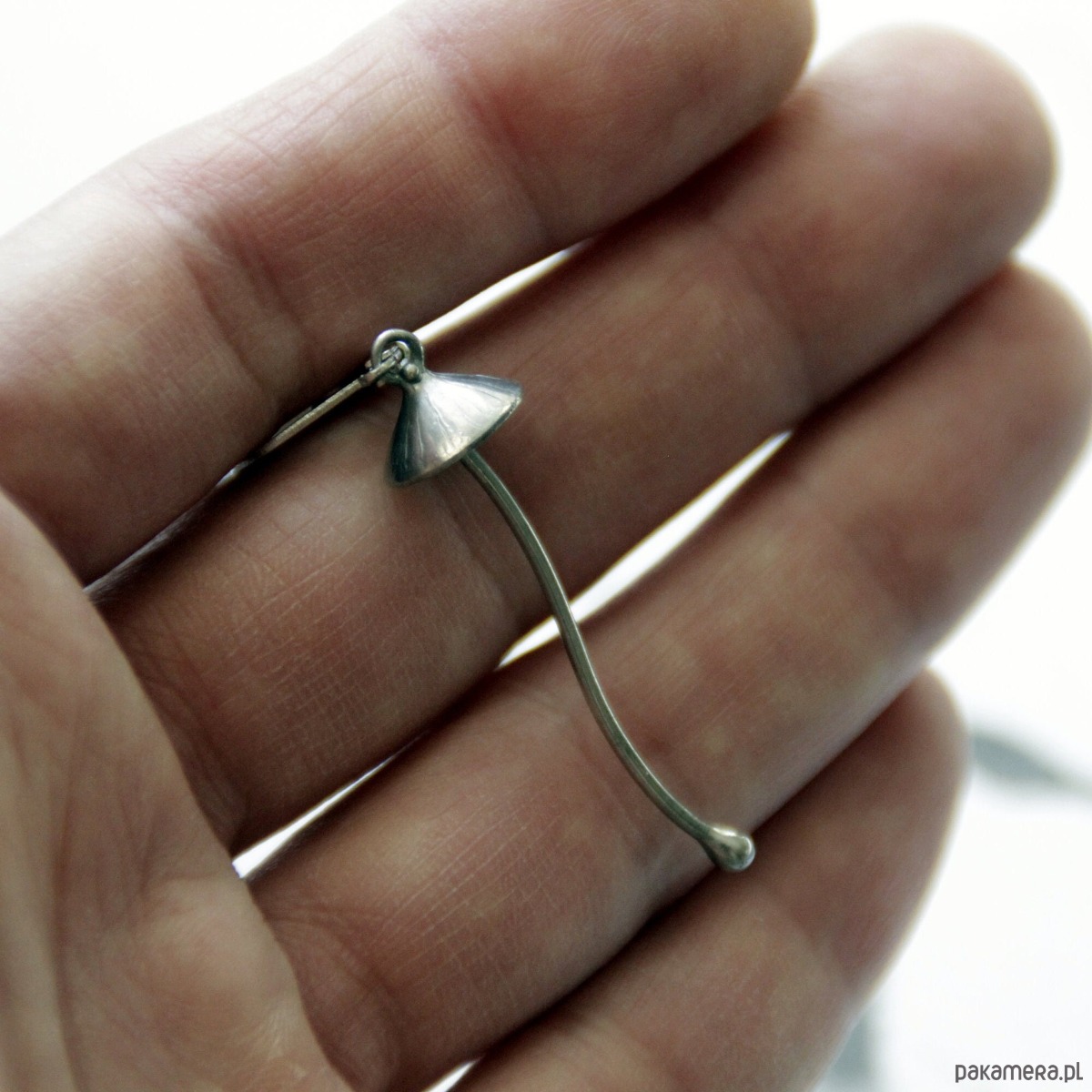Ręcznie wykonana Łysiczka lancetowata pojedynczy kolzyk grzyb z motywem leśnym w stylu boho minimalistyczny. Wykonany z miedzi, cyny, metalu. Zabezpieczony środkiem przeciwutleniającym, szlifowany, polerowany. Lekka i solidna, wyjątkowa biżuteria w stylu leśnym . Wszystkie elementy są wykonane ręcznie, co zapewnia indywidualność każdego produktu wytworzonego w warsztacie Yadovito. Stop cyny i miedzi polerowany roztworem wykończeniowym, aby nadać biżuterii szlachetny wygląd, a jednocześnie zapobiec utlenianiu się metalu. Kolor: srebrny. Rozmiar: około 5/1 cm.