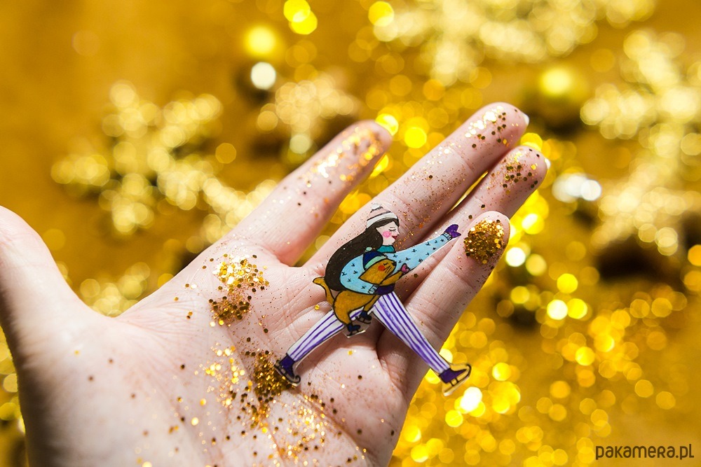 Piękna broszka ręcznie rysowana, zabezpieczona lakierem ekologicznym. Powierzchnia broszki jest błyszcząca.