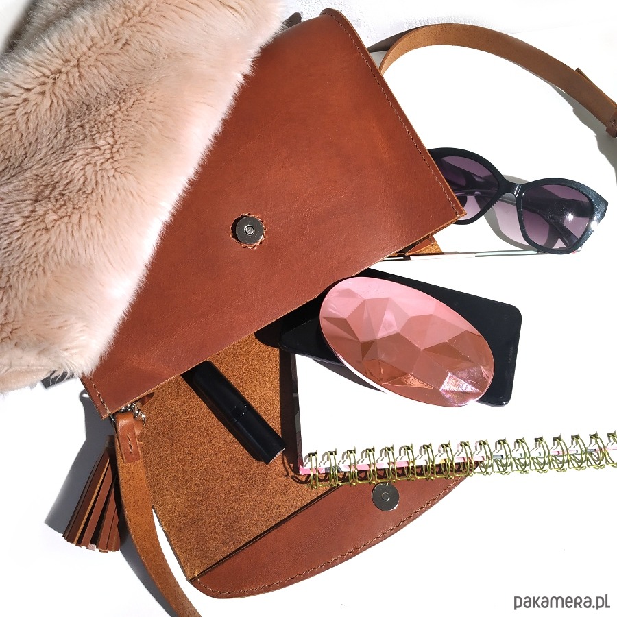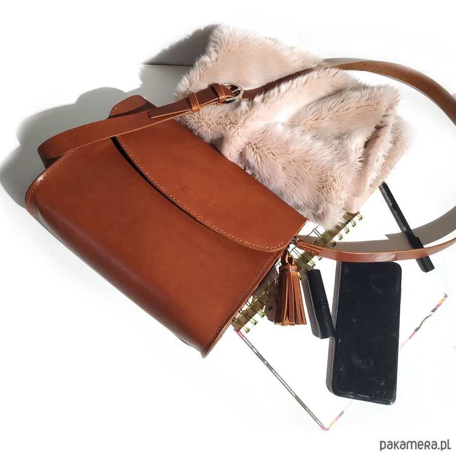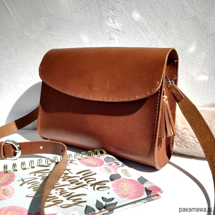 Wyjątkowa torebka na ramię wykonana z naturalnej skóry juchtowej w kolorze koniak.