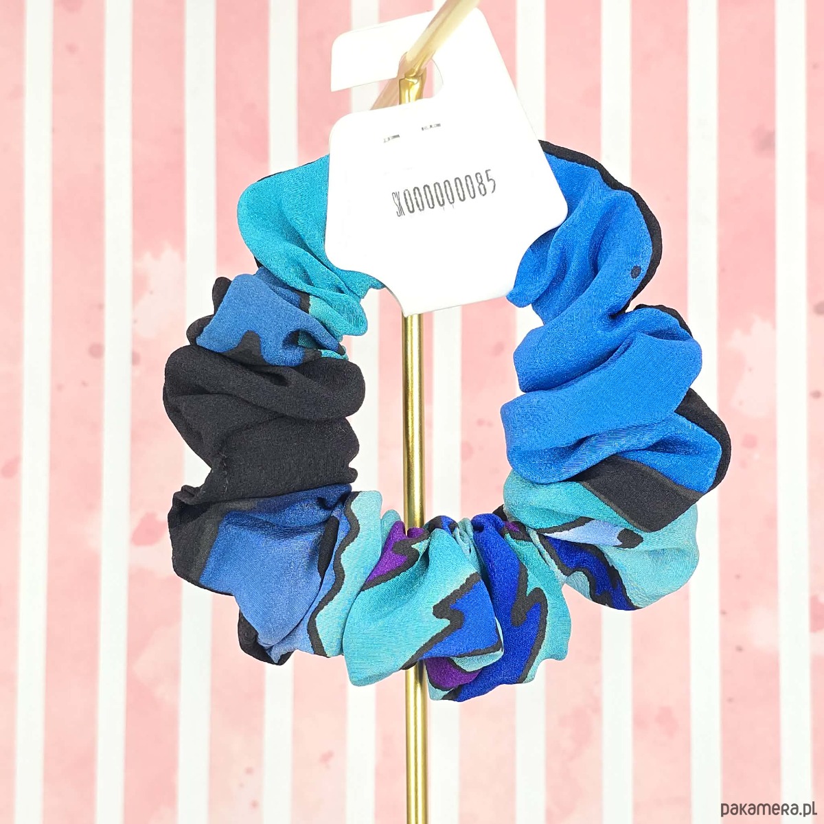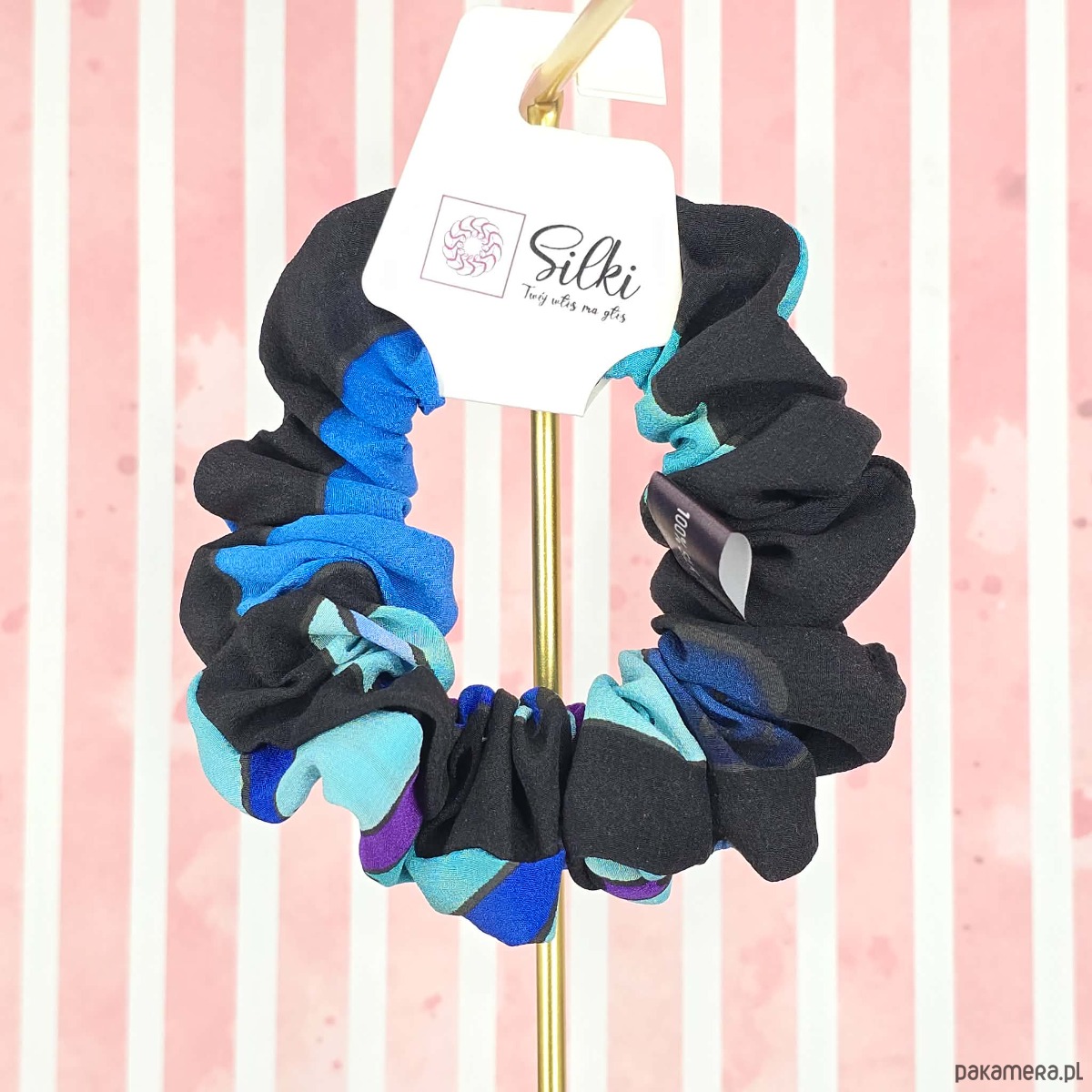 M średnia gumka do włosów jedwab naturalny scrunchie czarna niebieska