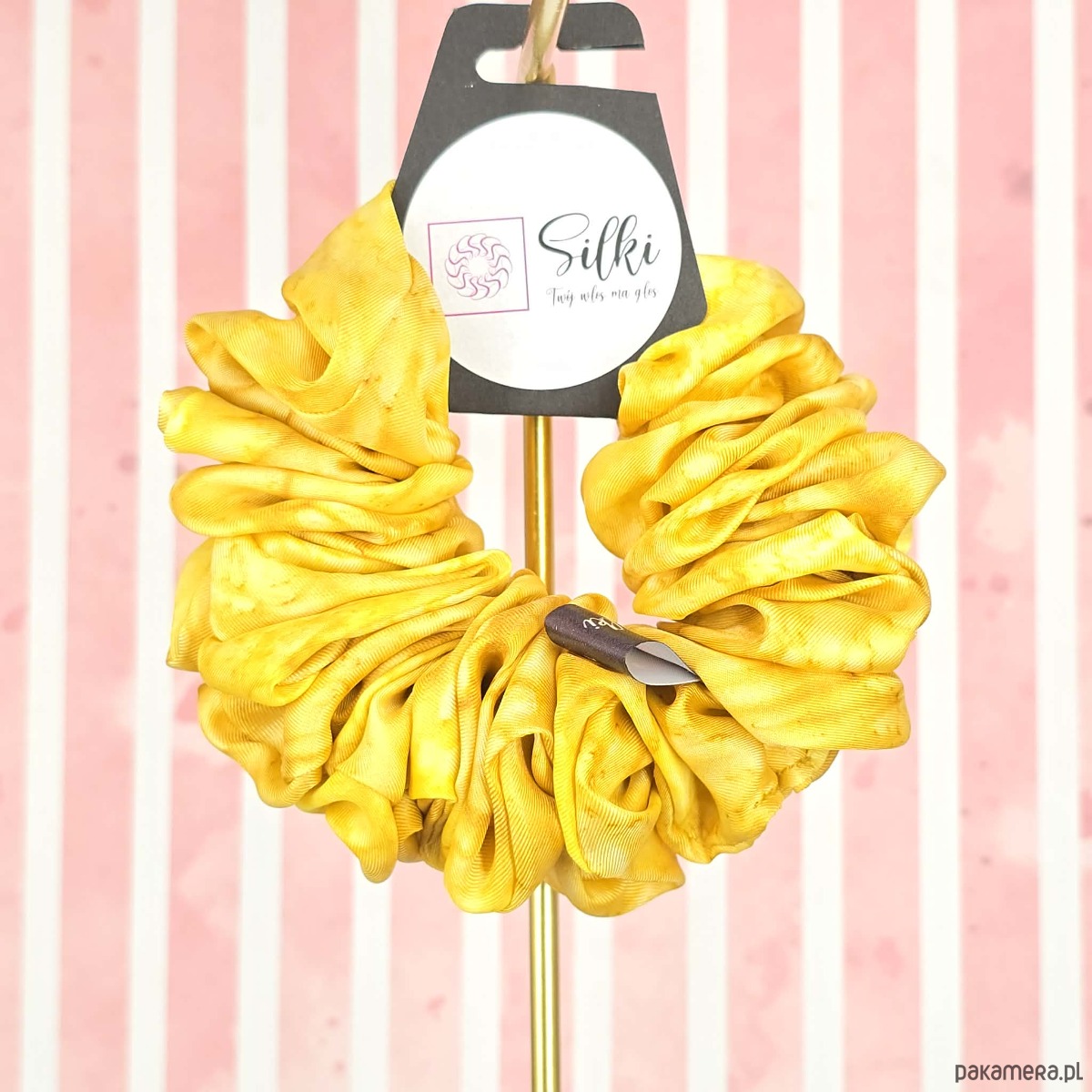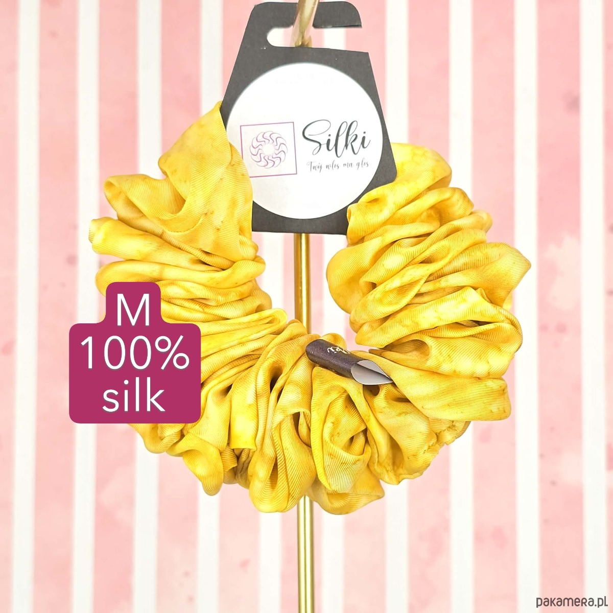 M średnia gumka do włosów jedwab naturalny scrunchie żółta
