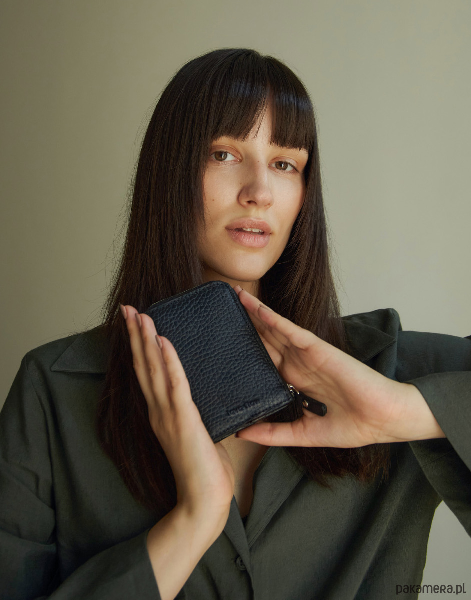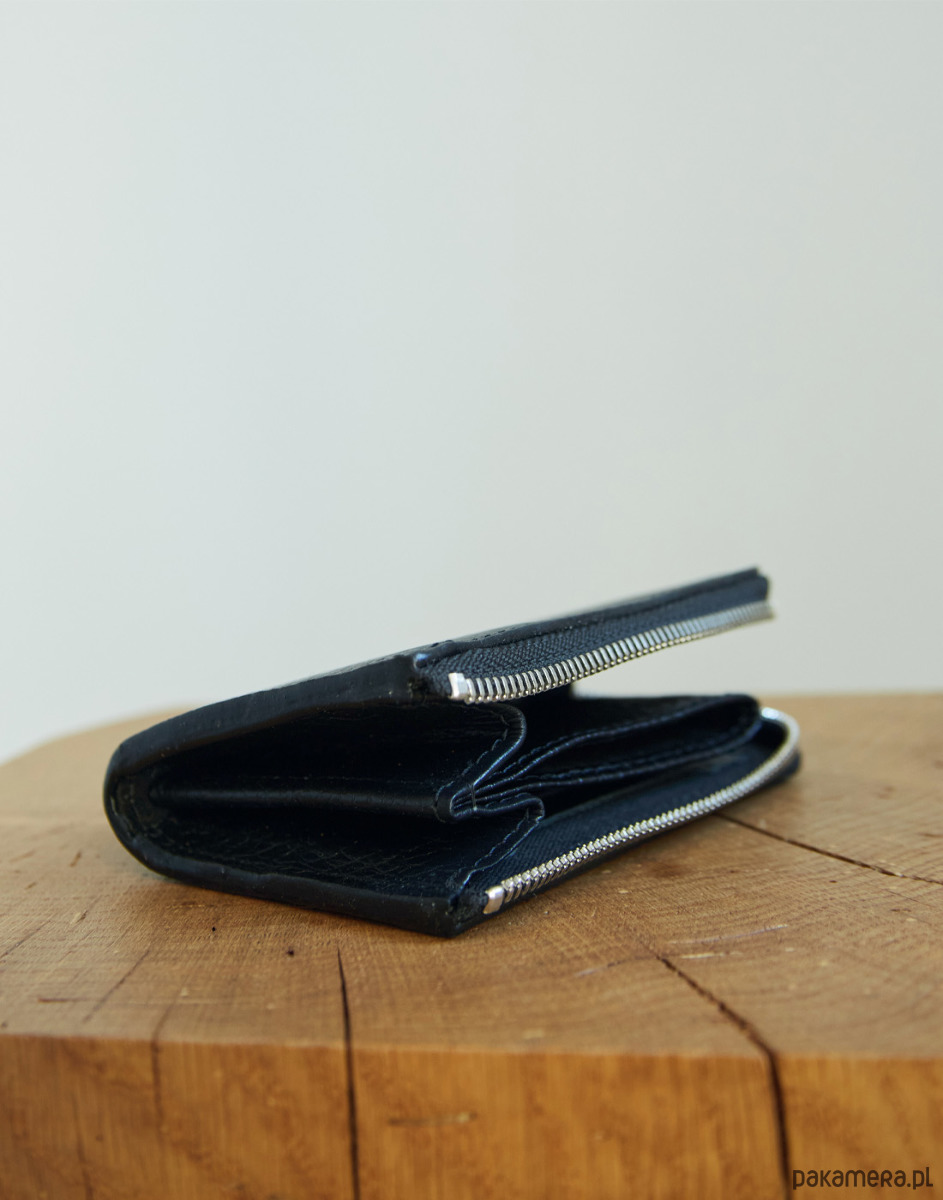 Maca to mały portfel mieszczący się do każdej torebki. Posiada 4 przegródki na karty, kieszonkę na monety. Pieniądze papierowe można zagiąć wokół sekcji monet.