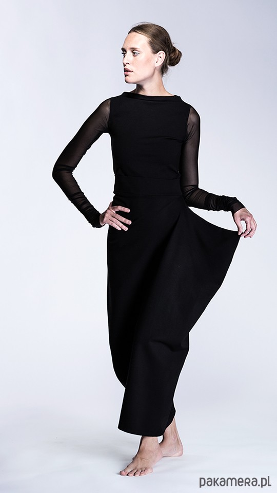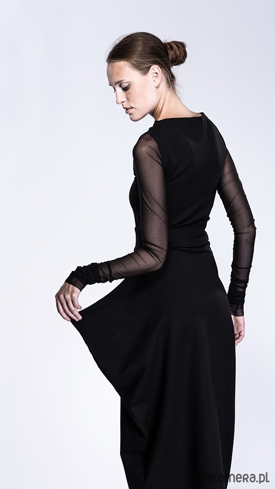 rękawy wąskie, dłuuugie, tiulowe do przymarszczenia, dekolt łódkowy,