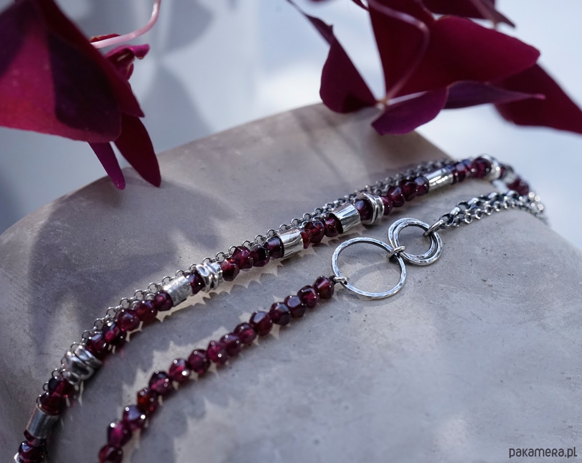 Srebrne elementy wykonane ręcznie, fakturowane, oksydowane i polerowane.