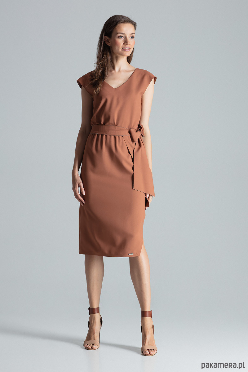 Kolejnym elementem garderoby, którego nie może zabraknąć w kobiecej garderobie jest sukienka w kolorze beżu lub brązu. Nasza propozycja jest od marki FIGL. Marka, która szyje i tworzy z miłości do kobiet. Prezentowana przez nas sukienka jest tego najlepszą wizytówką – idealnie skrojona, podkreślająca kobiece kształty, z dekoltem w serek i rozcięciem przy nogach. Pięknie prezentuje się z sandałami i wysokimi szpilkami, jak i botkami. Sprawdzi się w każdej sytuacji, a co najważniejsze niezależnie od dodatków zawsze będziemy wyglądać w niej kobieco.