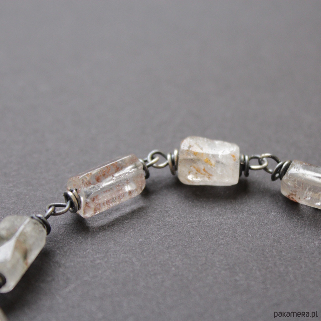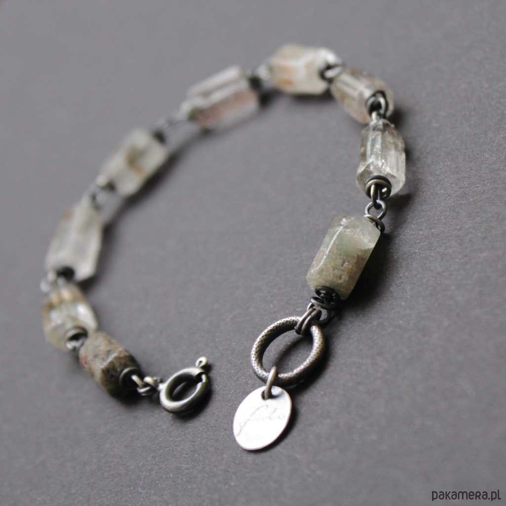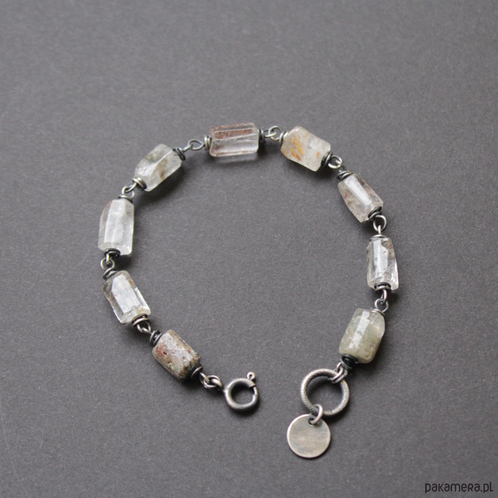 Bransoletka została wykonana z oksydowanego srebra próby 925 oraz niesamowitych kwarców z inkluzjami wielkości 0,8-0,9 cm.
