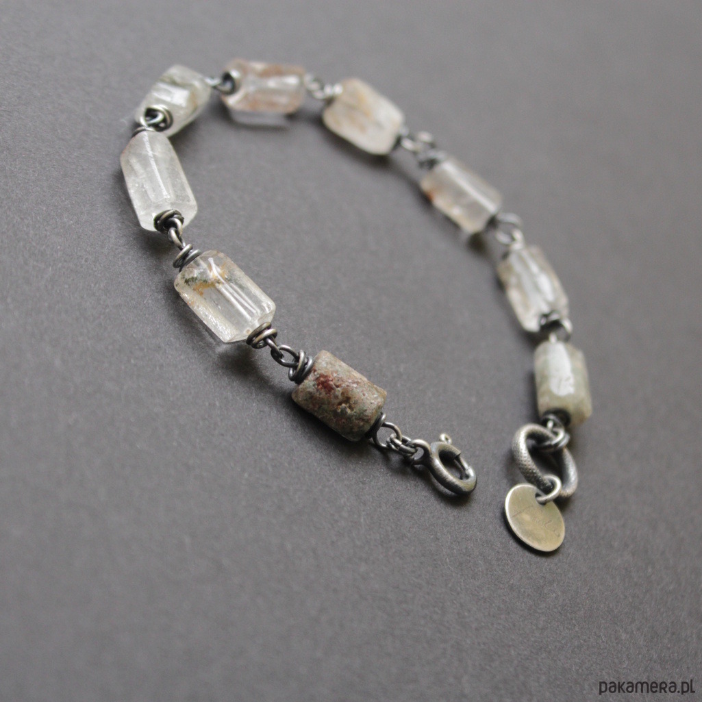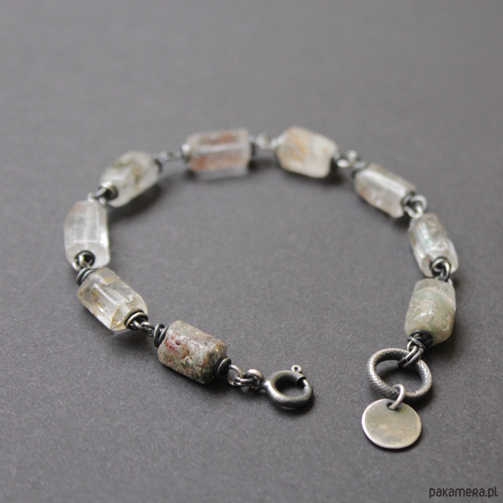 Bransoletka została wykonana z oksydowanego srebra próby 925 oraz niesamowitych kwarców z inkluzjami wielkości 0,8-0,9 cm.