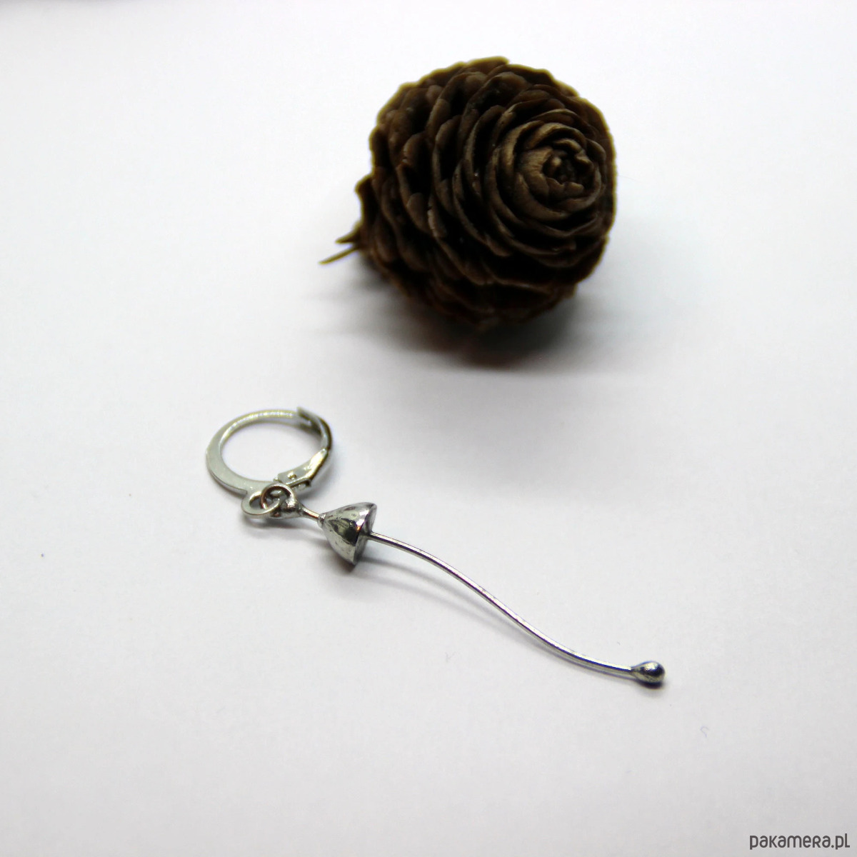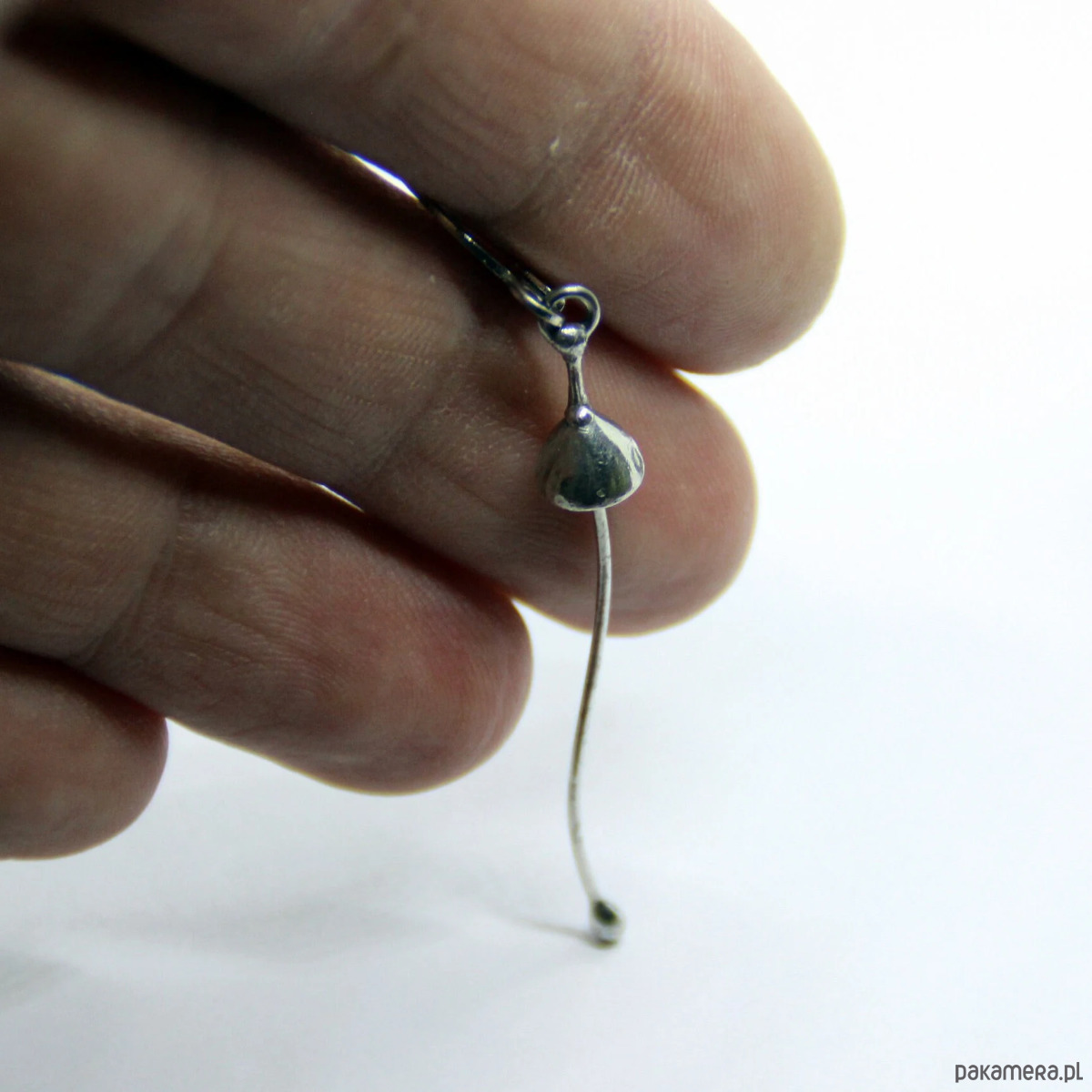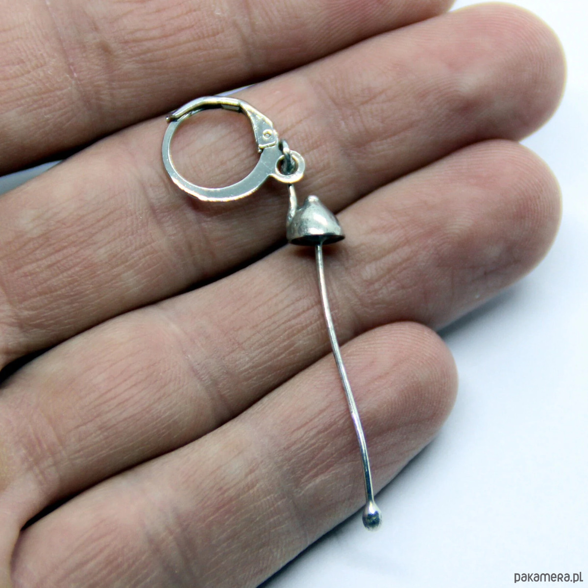 Magiczny grzyb leśny – pojedynczy kolczyk wykonany ręcznie z miedzi, cyny i stali. Kolczyk jest lekki i wystarczająco wytrzymały. Wszystkie elementy są wykonane ręcznie, co zapewnia indywidualność każdego produktu wytworzonego w warsztacie Yadovito. Stop miedzi jest polerowany roztworem wykończeniowym, aby nadać biżuterii szlachetny wygląd, a jednocześnie zapobiec utlenianiu się metalu. Każda biżuteria wygląda indywidualnie, ponieważ kapelusze grzybów są wykonywane ręcznie, a nie odlewane lub tłoczone. Rozmiar około 4/0,6 cm. Kolor srebrny.