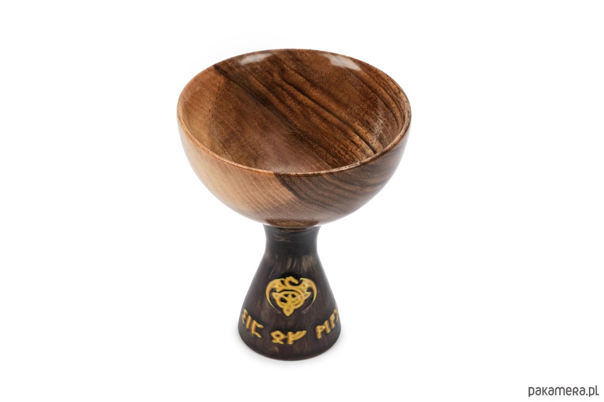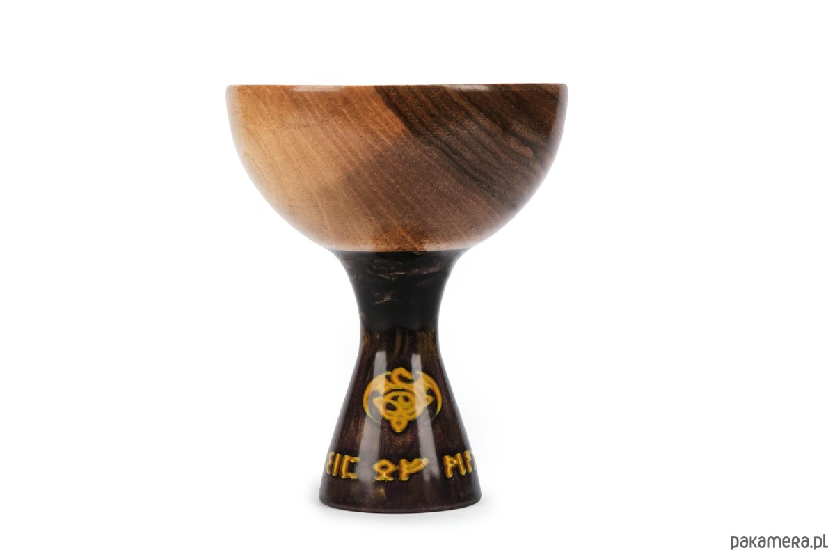 Ręcznie wykonany z europejskiego orzecha włoskiego, ten puchar wygodnie mieści się w jednej dłoni. Nóżka mieni się ciemnofioletowym i złotym kolorem, odzwierciedlając tajemne siły. Z boku widać herb smoka i świecące runy migoczące subtelnie, informując: Łyczek magii.