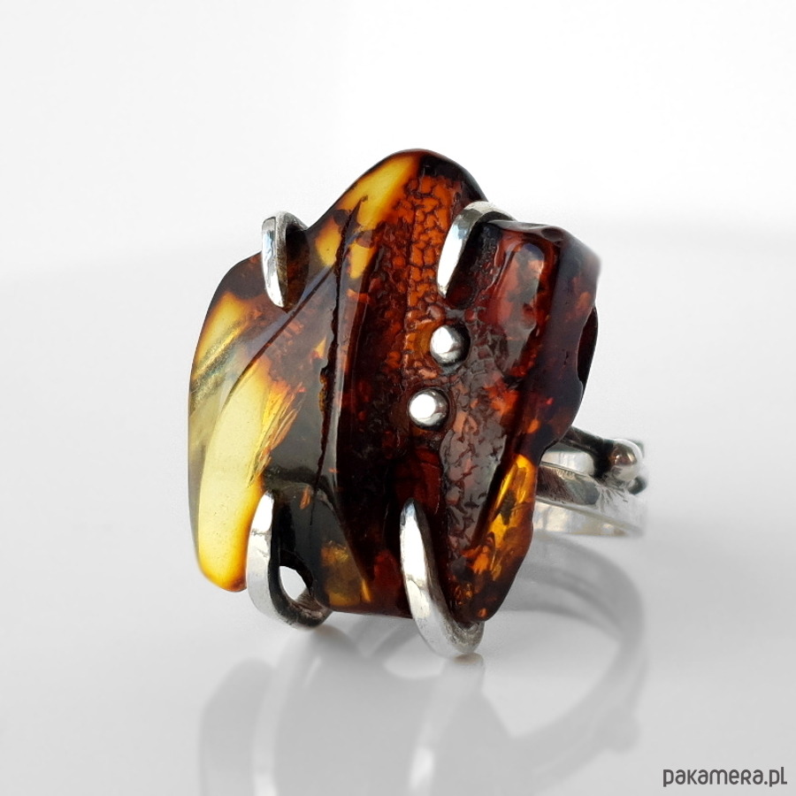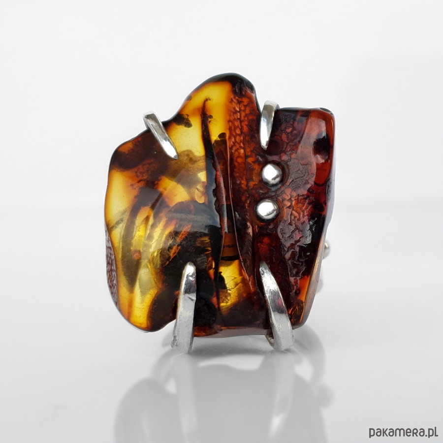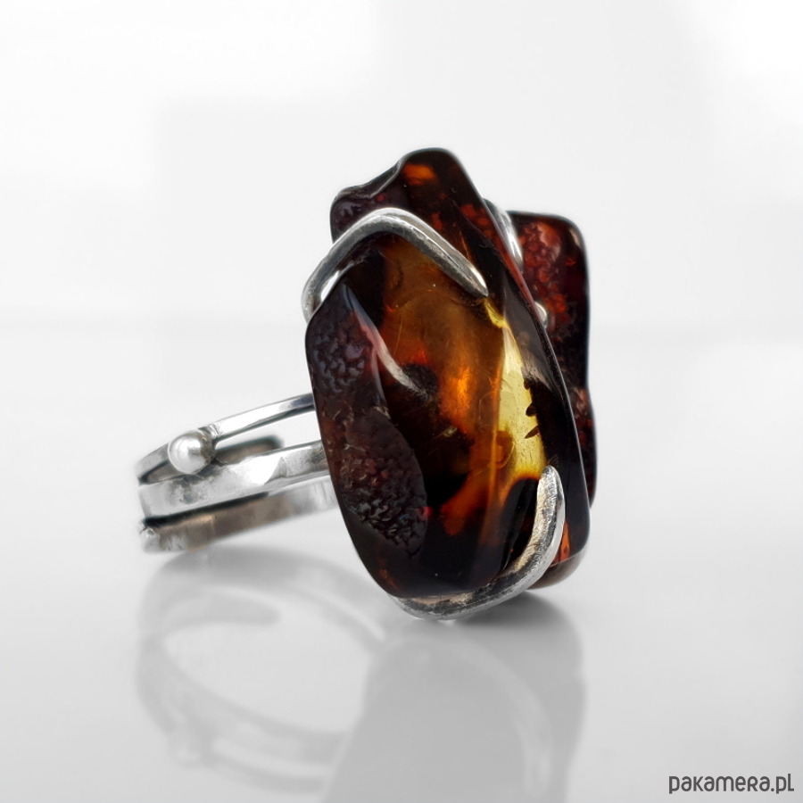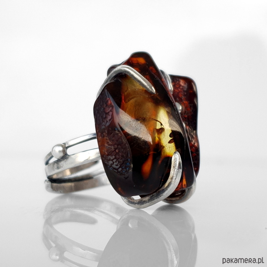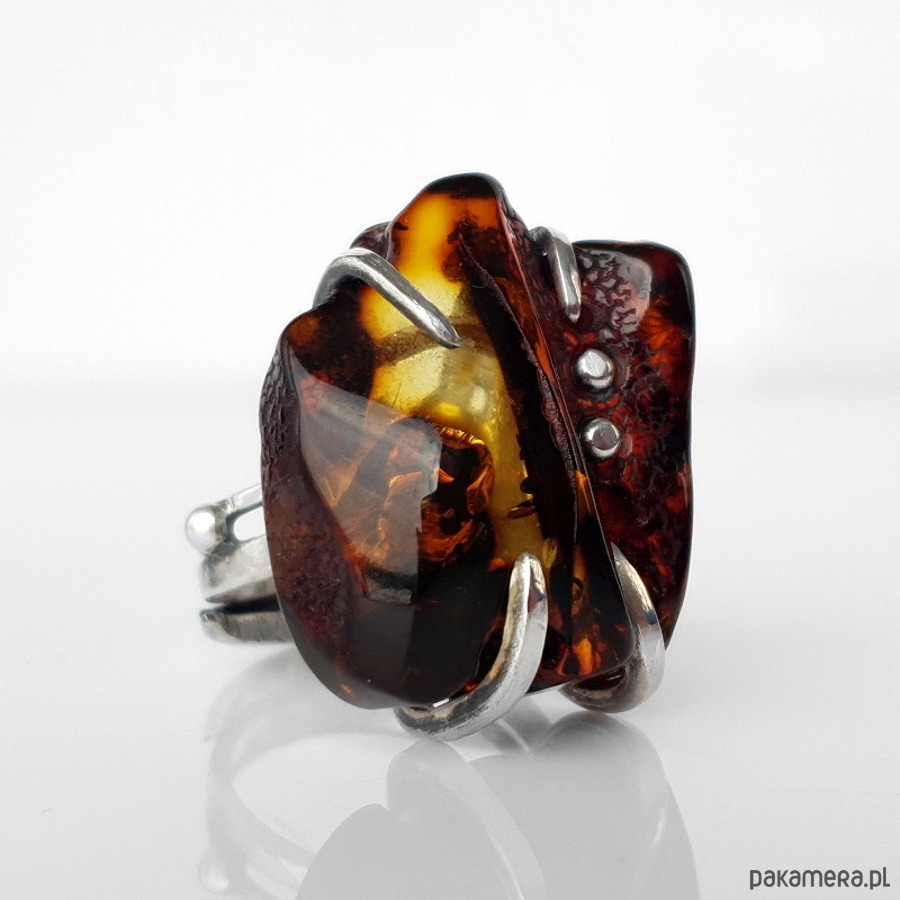 Magma srebrny pierścionek z bursztynem bałtyckim