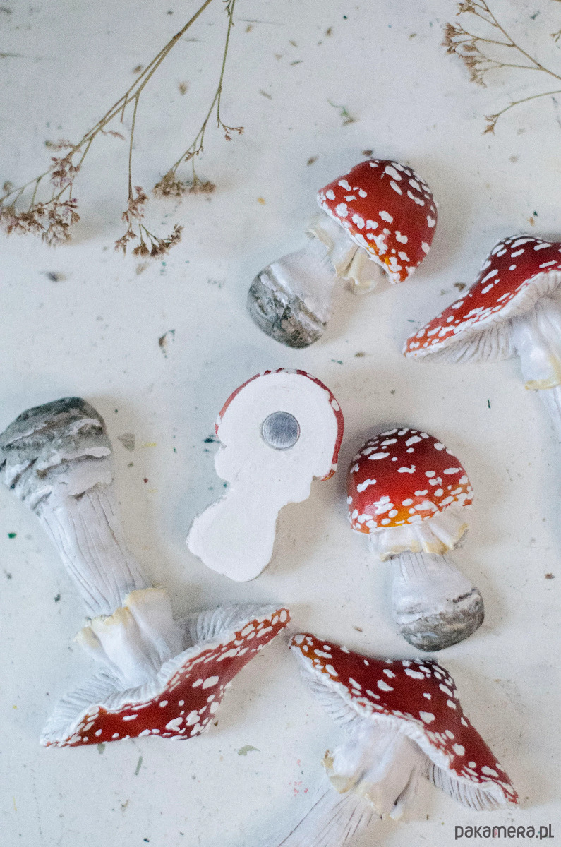 Pływające magnesy grzybowe, magnesy Amanita Muscaria, grzyby, natura Rustykalny wystrój lodówki