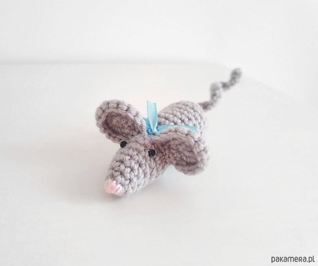 Uroczy magnes na lodówkę, myszka zrobiony na szydełku.