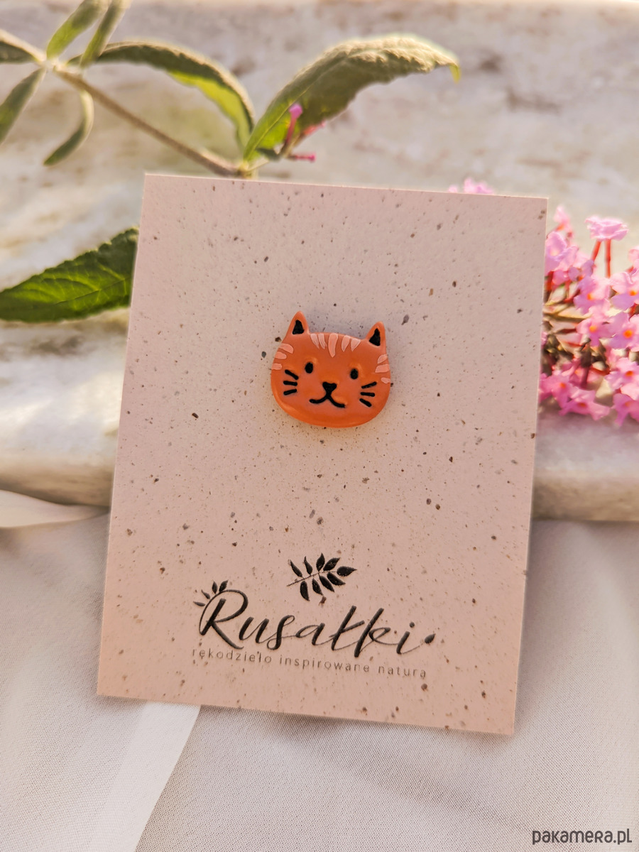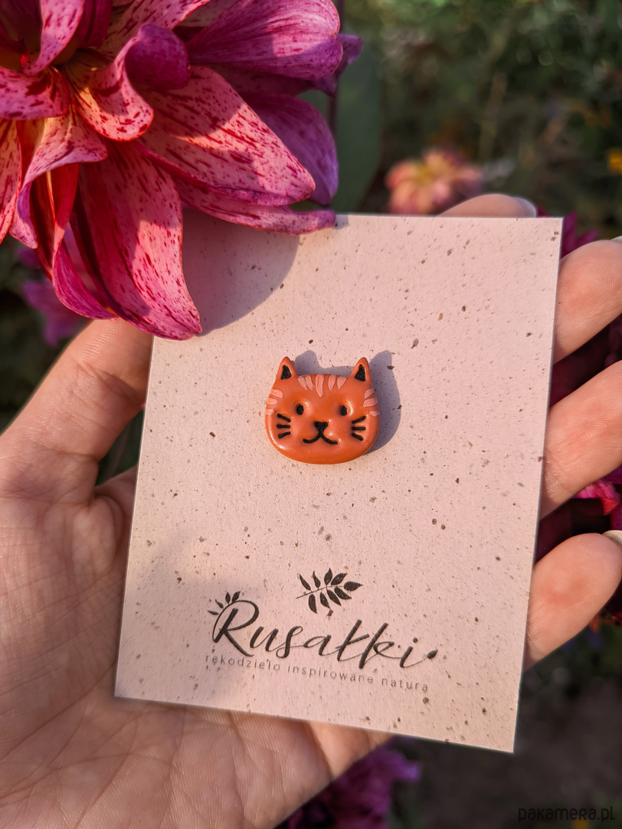 Magnes ręcznie malowany rudy kot, kotek na lodówkę, akcesoria z kotem