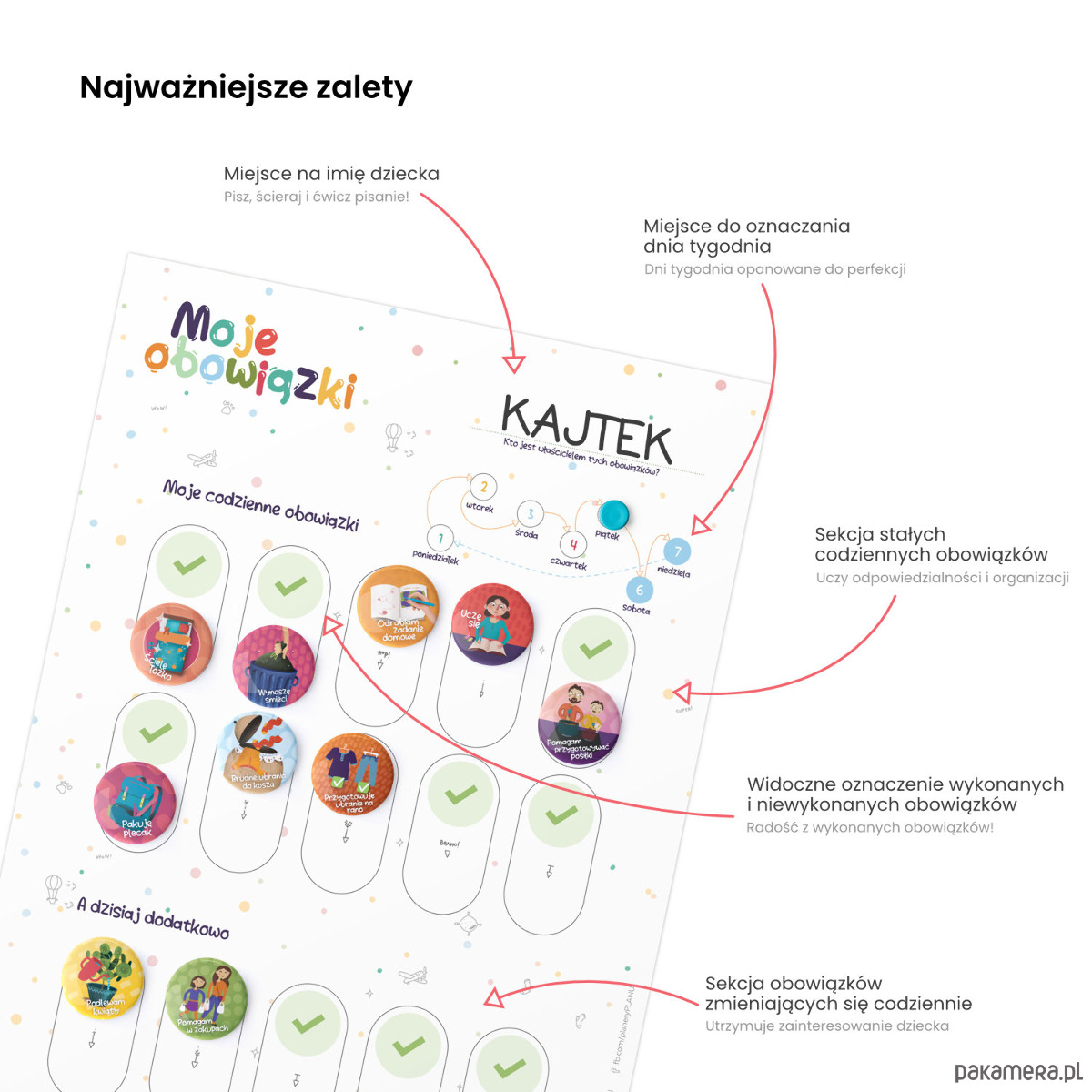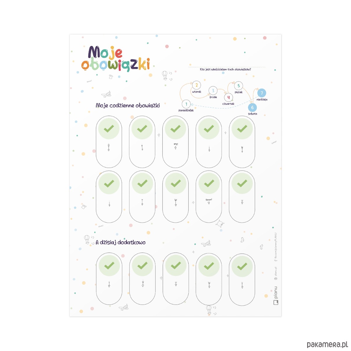 Planer obowiązków w atrakcyjny sposób pokazuje, które obowiązki są wykonane. Dzięki temu dziecko odczuwa satysfakcję z samodzielnie wykonanych obowiązków.