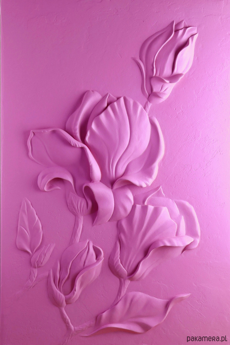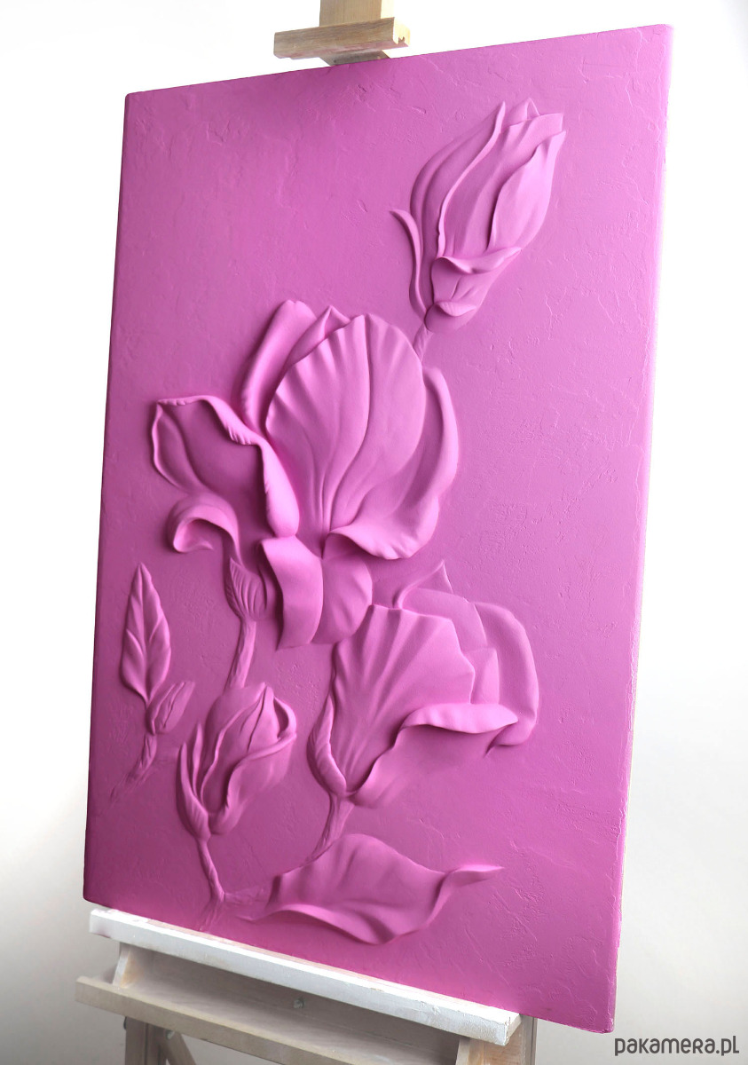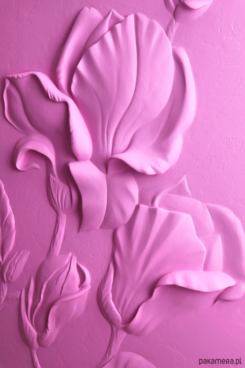 Zwykle tworzę białe płaskorzeźby, ale tym razem zdecydowałam się dodać do wnętrza dawkę kolorystyczną i odrobinę energii. Tak powstał strukturalny obraz "Magnolia" w kolorze intensywnego różu.
