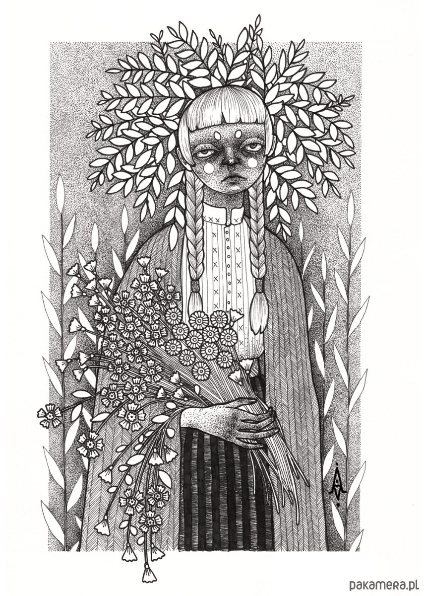 Oryginalna ilustracja została wykonana cienkopisami w technice dotworku. Dostępna również w formie mniejszej pocztówki!