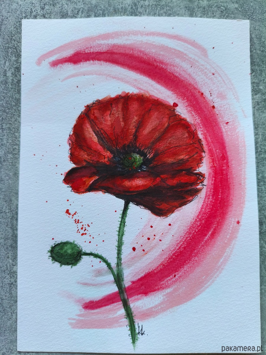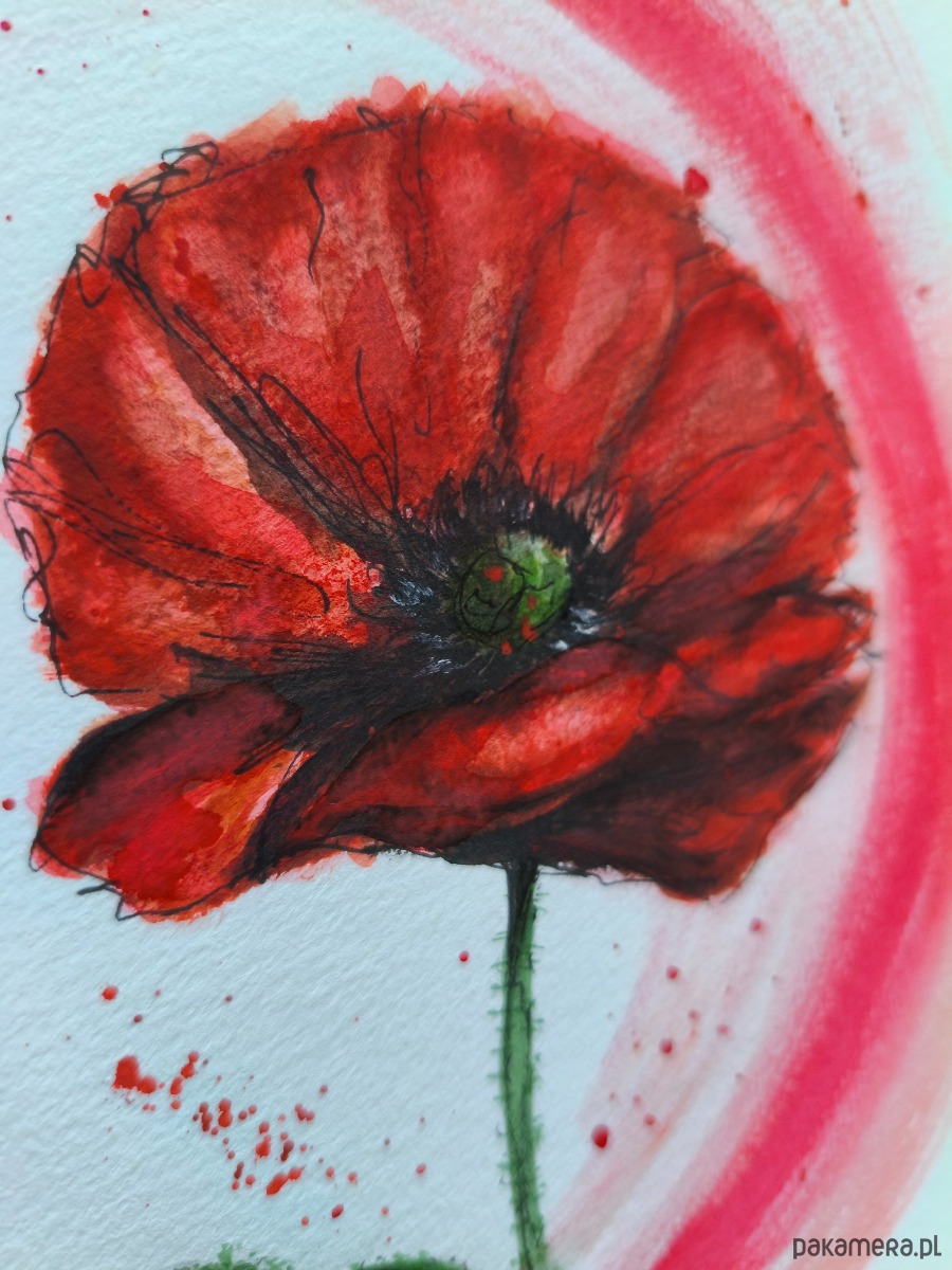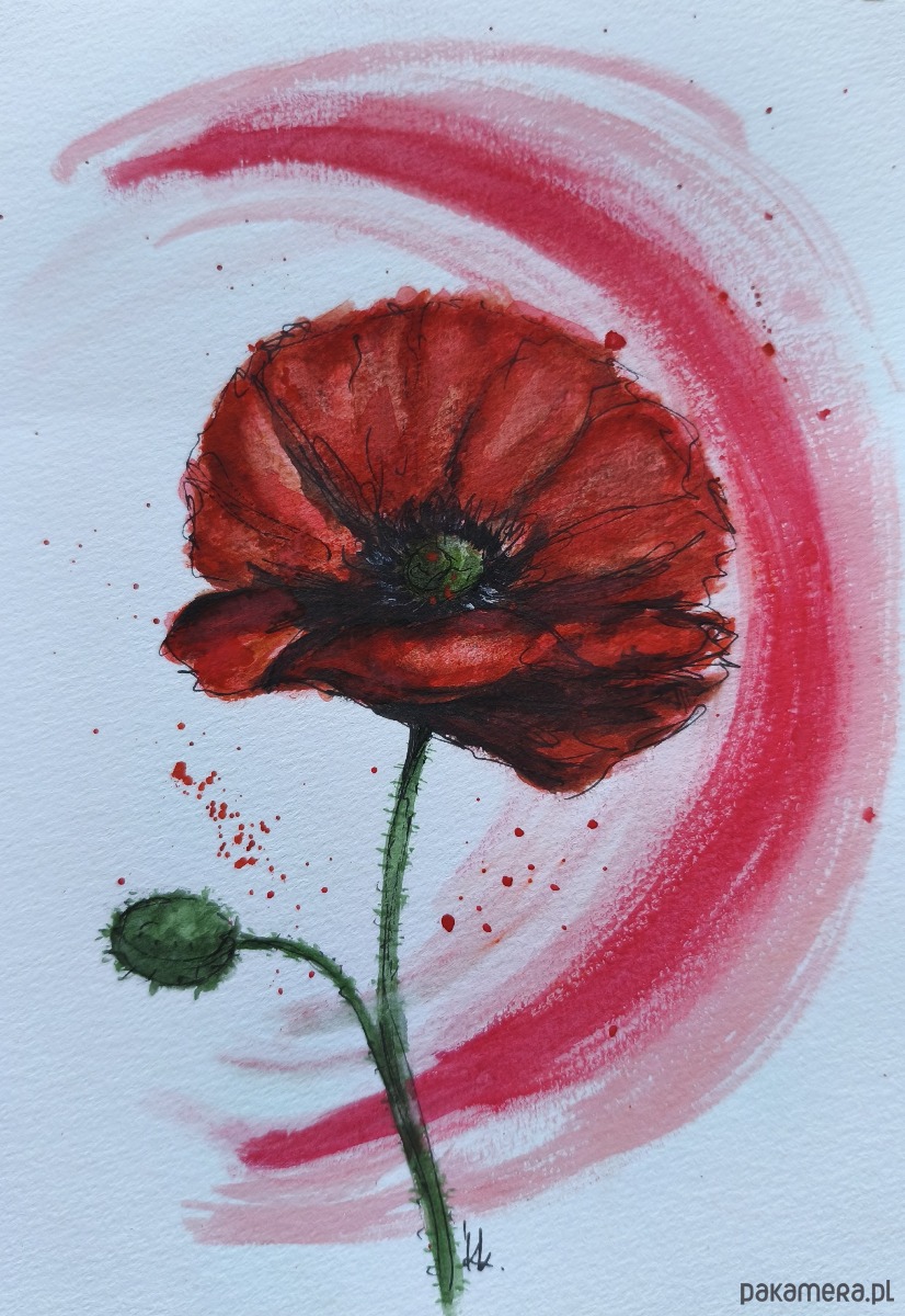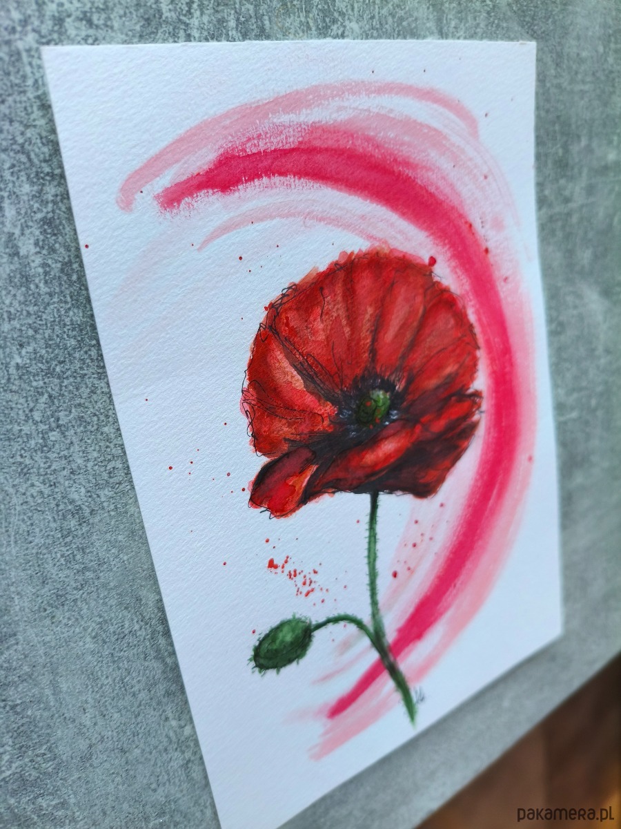 Mak z serii Kwiaty akwarela A5 obraz natura łąka kolekcja