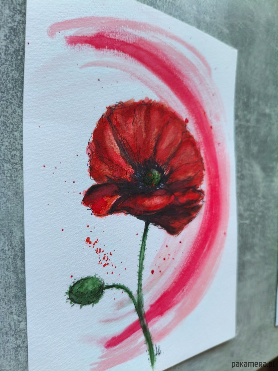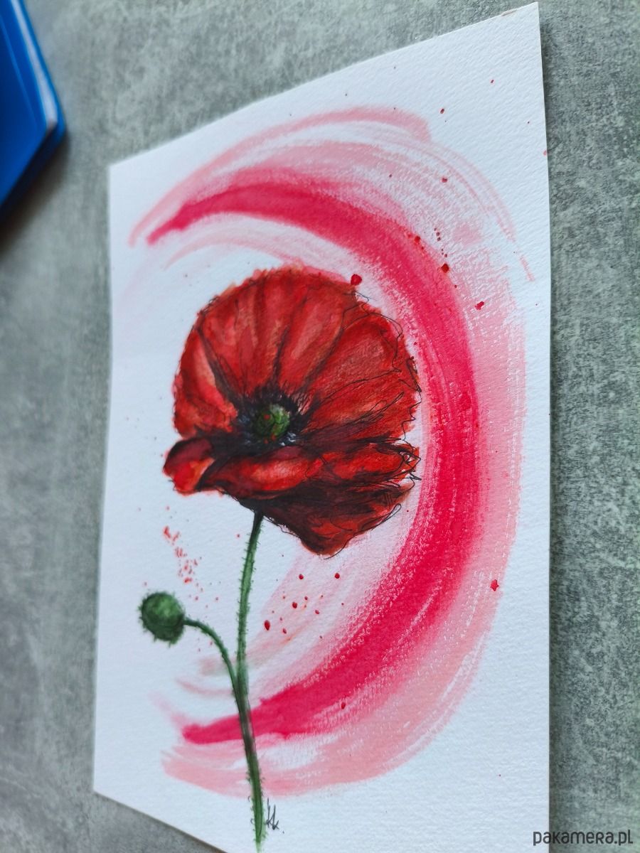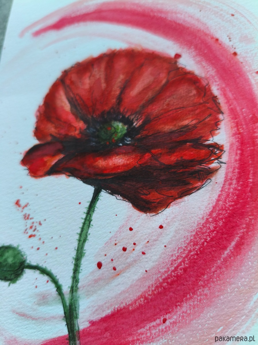 Mak z serii Kwiaty akwarela A5 obraz natura łąka kolekcja