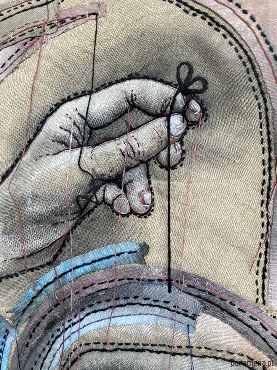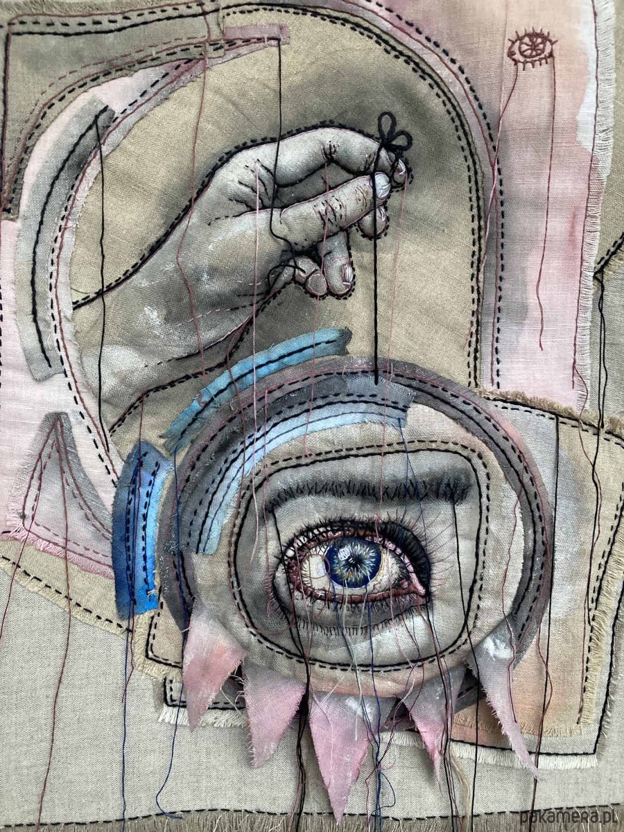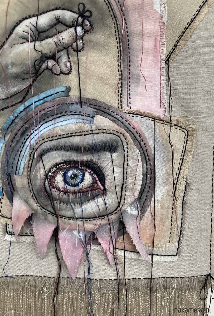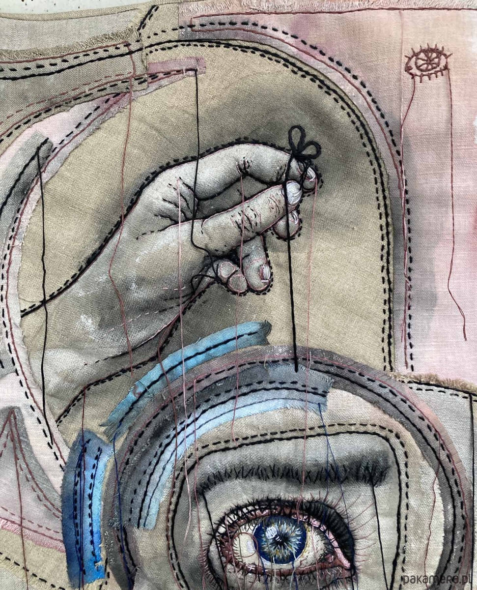 Makata lniana ręcznie szyta malowana haftowana "sterowana".
