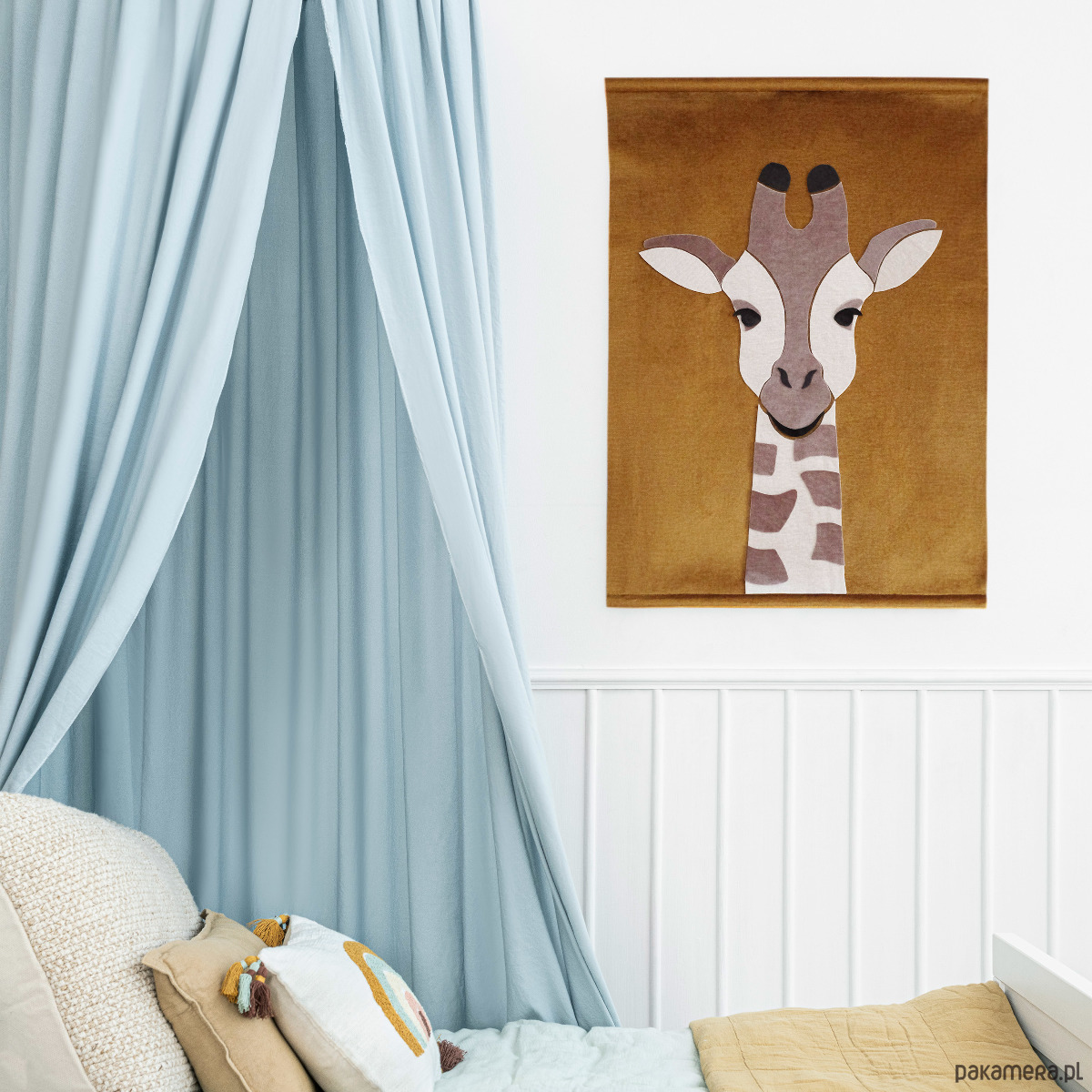 Żyrafa pięknie prezentuję się w pokoju maluszka, aksamitna tkanina zmienia delikatnie kolor w zależności od kąta padania światła. Przyjemna w dotyku tkanina daje wyjątkowy efekt wizualny, wprowadza uroczą atmosferę w każdym wnętrzu.