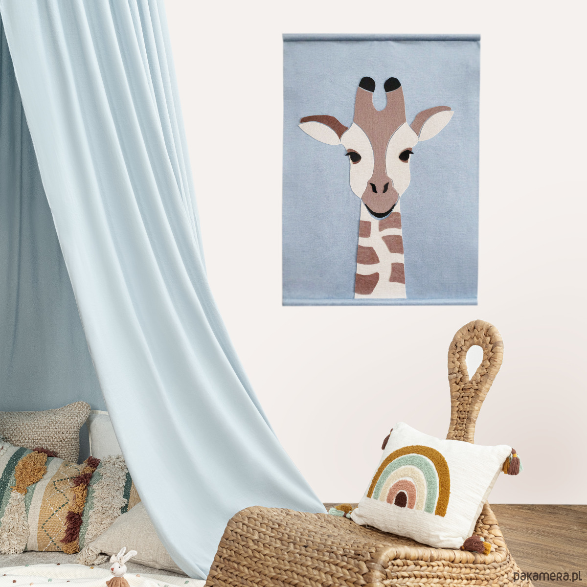 Żyrafa pięknie prezentuję się w pokoju maluszka, aksamitna tkanina zmienia delikatnie kolor w zależności od kąta padania światła. Przyjemna w dotyku tkanina daje wyjątkowy efekt wizualny, wprowadza uroczą atmosferę w każdym wnętrzu.