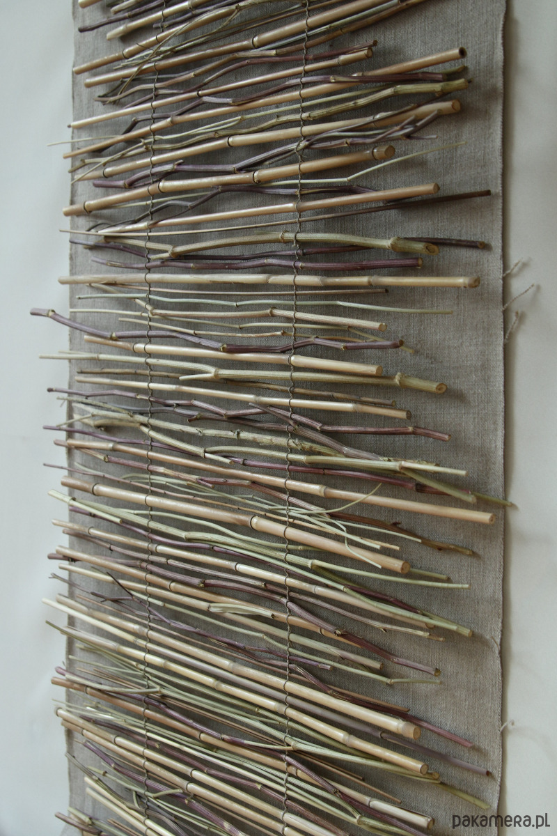 Makatka na ścianę wykonana ręcznie,z naturalnych łodyg. Każdy element został dobrany intuicyjnie, dzięki czemu dekoracja ma organiczny, dziki charakter.