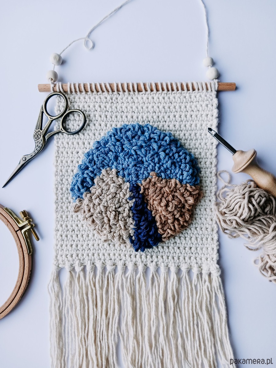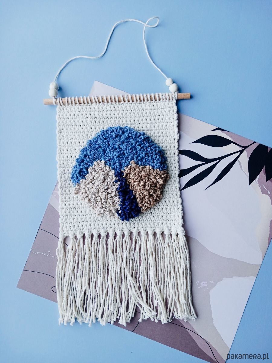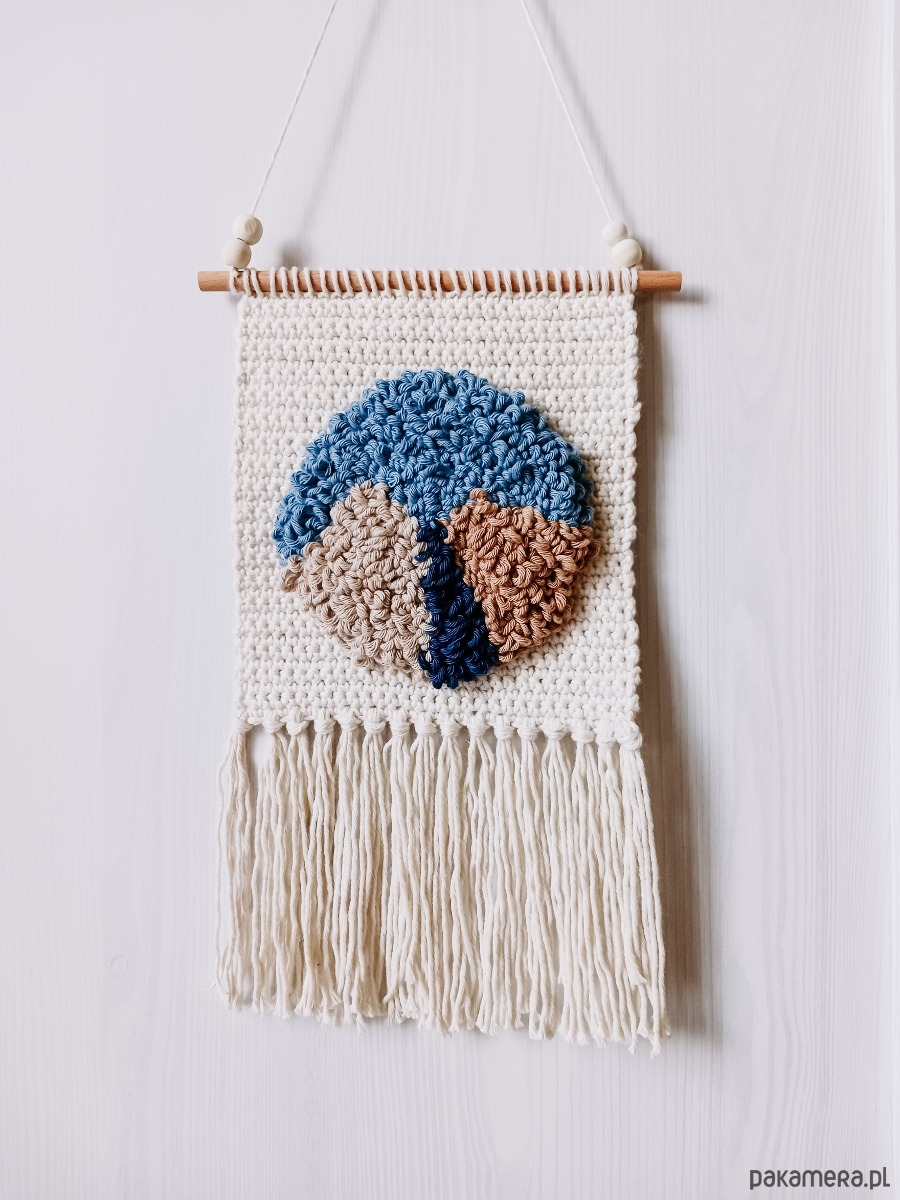 Makatka będzie niebanalną ozdobą ściany w salonie, sypialni, pracowni, czy na zadaszonej werandzie. To oryginalny prezent dla osoby ceniącej rękodzieło, kochającej kolorowe dodatki do wnętrza.