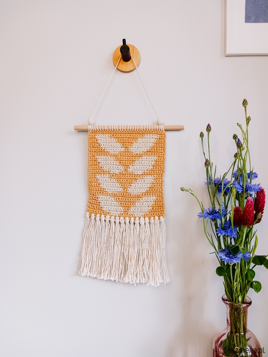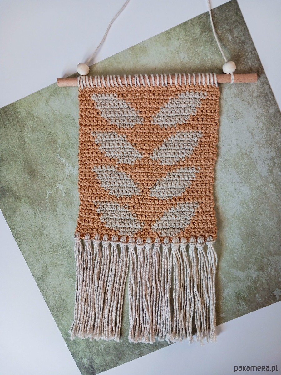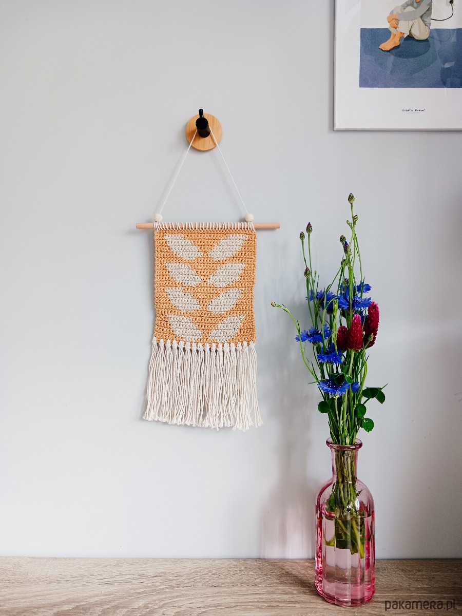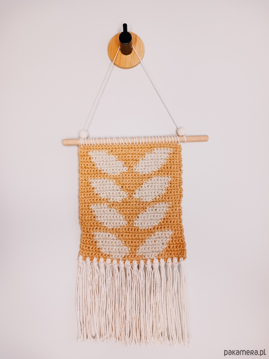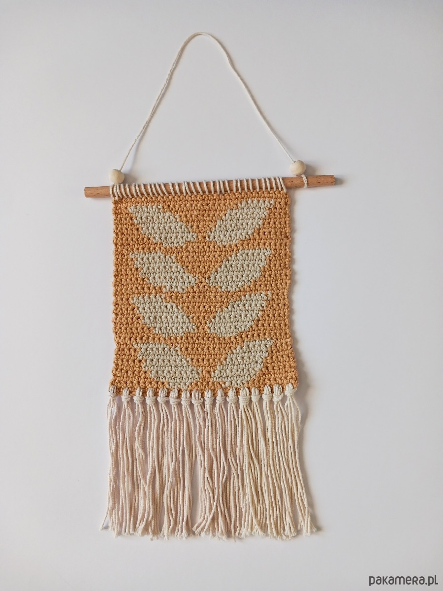 Korzystam z samodzielnie opracowanego wzoru, jednak ponieważ jest to praca ręczna Twoja makatka może się odrobinę różnić od tej na zdjęciach w ofercie. Nie dotyczy to użytej włóczki, czy elementów wzoru, ale np. naturalnego patyka (nie ma dwóch identycznych) lub wymiarów (do 0,5 cm różnicy).