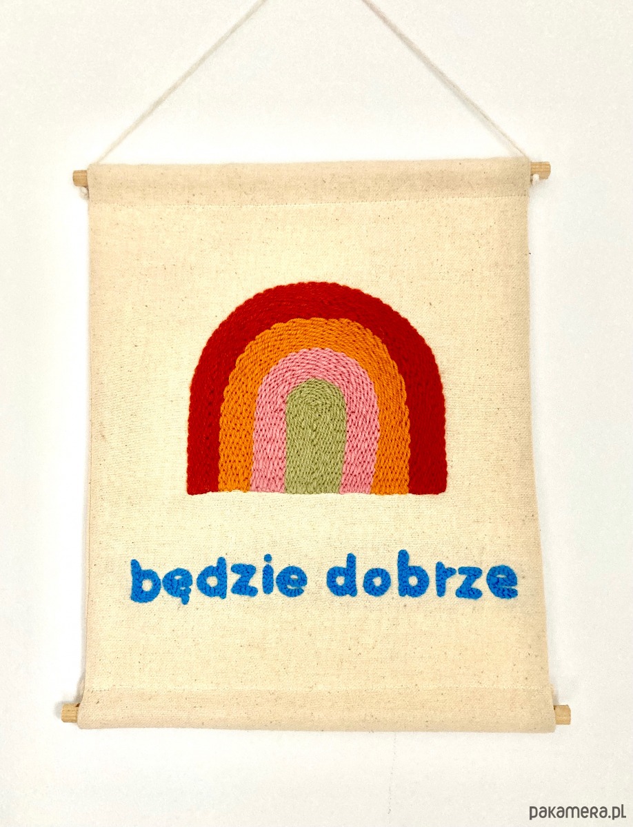 Makatka z tęczą i napisem