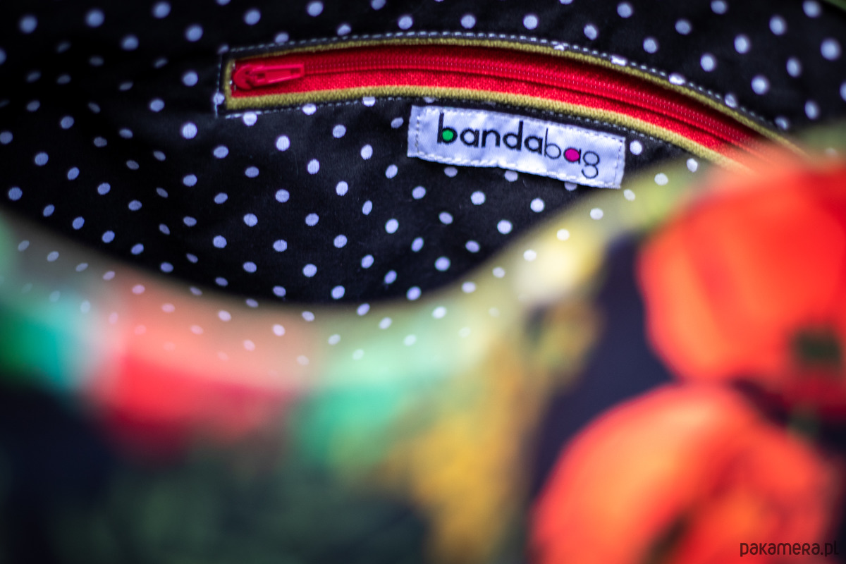 W środku tego klasycznego, ręcznie szytego worka jest duża podwójna kieszeń, jedna mniejsza zapinana na zamek oraz karabińczyk, do którego można przypiąć klucze