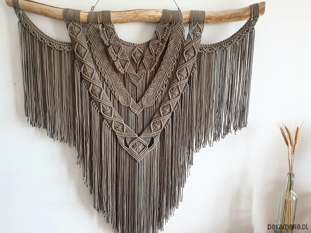 Ręcznie pleciona, okazała i bogato zdobiona makrama wypleciona ze 100% sznurka bawełnianego.