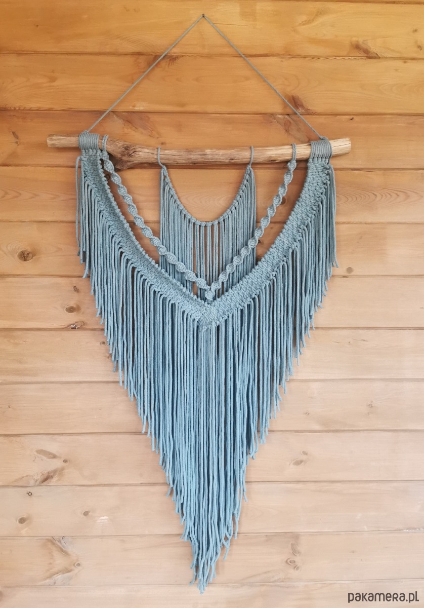 Makrama na kijku o szerokosci 76cm.. Długość makramy 117 cm plus sznurek do zawieszenia.. Makrama w kolorze laurowym ( niebiesko - zielonym) piękny kijek dębowy 👌.. Dostępna od ręki!!.. Super jako prezent.. Do dekoracji domu lub mieszkania.. Polecam.. Produkt handmade