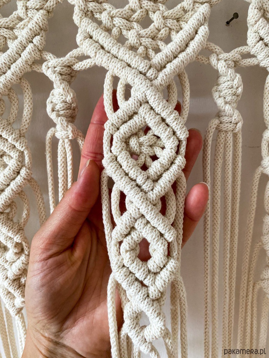 Makrama wykonana jest z wysokiej jakości sznurka bawełnianego w naturalnym kolorze, co nadaje jej subtelny, a zarazem lekko surowy charakter.